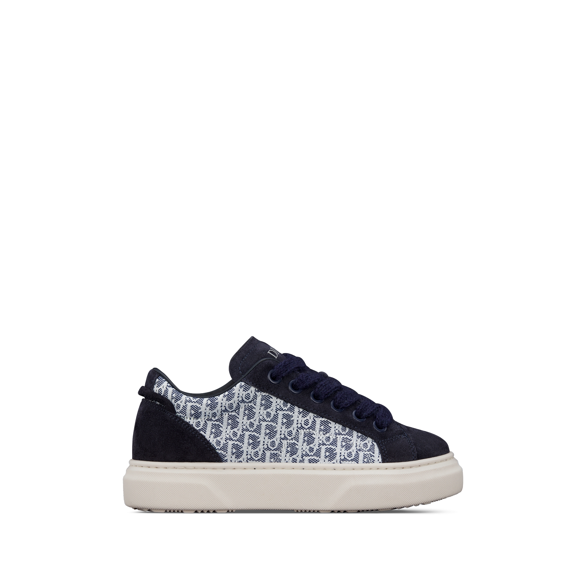 نمط ديور أوبليك بحبك الجاكار باللونين الأزرق والأبيض وجلد السويد باللون الأزرق الكحلي