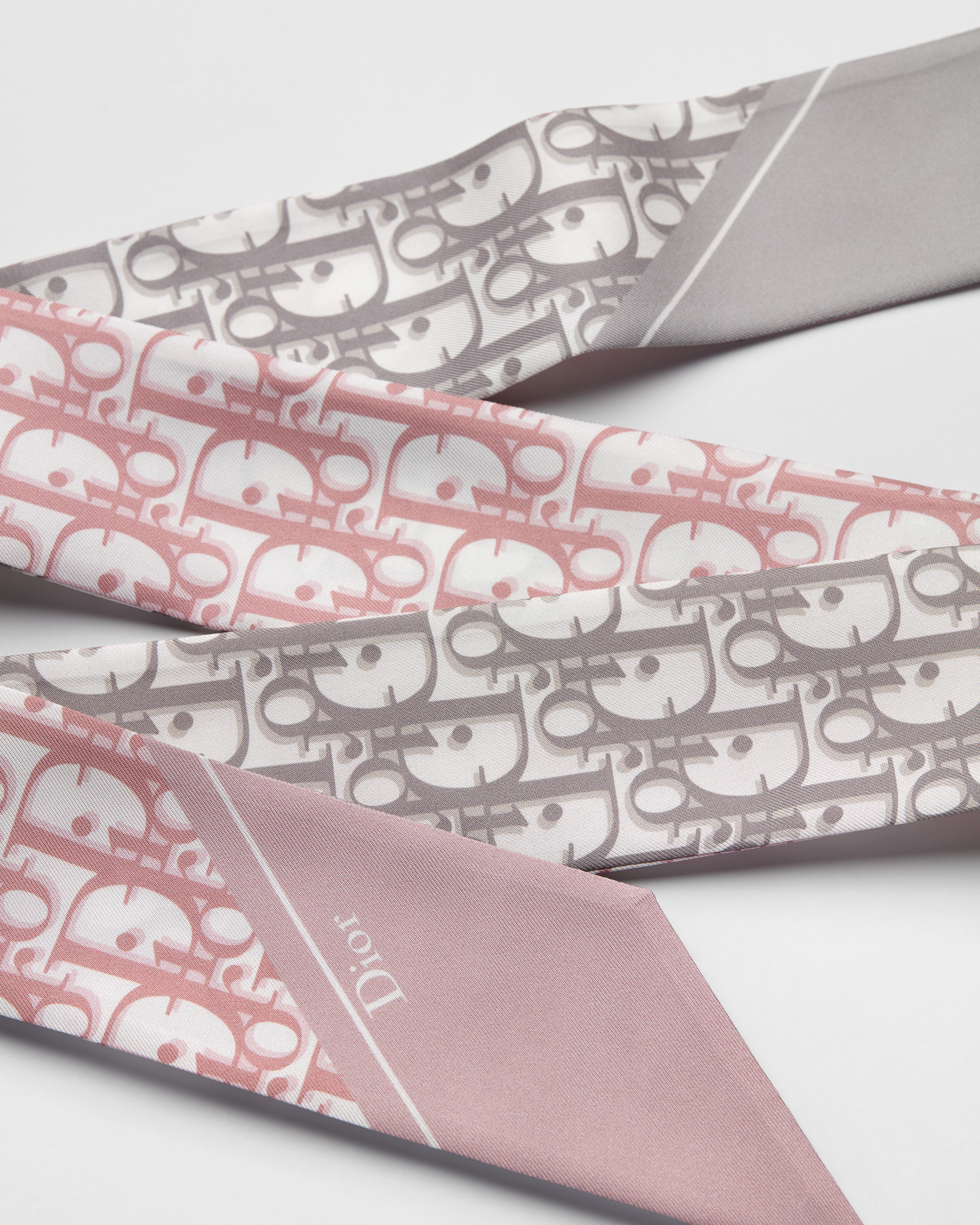 يحتفي وشاح ميتزا Dior Oblique المصنوع من الحرير بحبكة تويل بطبعة الدار الأيقونية بدرجتين لونيتين، التي تُعد بصمة مميّزة للدار منذ عام 1969. إنّ التصميم الأنيق الأزلي يتميّز بشكله المستطيل بأطراف مُستدقّة، ويتألق بوجه باللون الزهري وآخر باللون الرمادي، وكلاهما مزيّنان بتوقيع Dior. يضيف وشاح ميتزا لمسة أنيقة إلى أي إطلالة عصرية، ويمكن لفه حول العنق أو المعصم أو ربطه على الحقيبة.