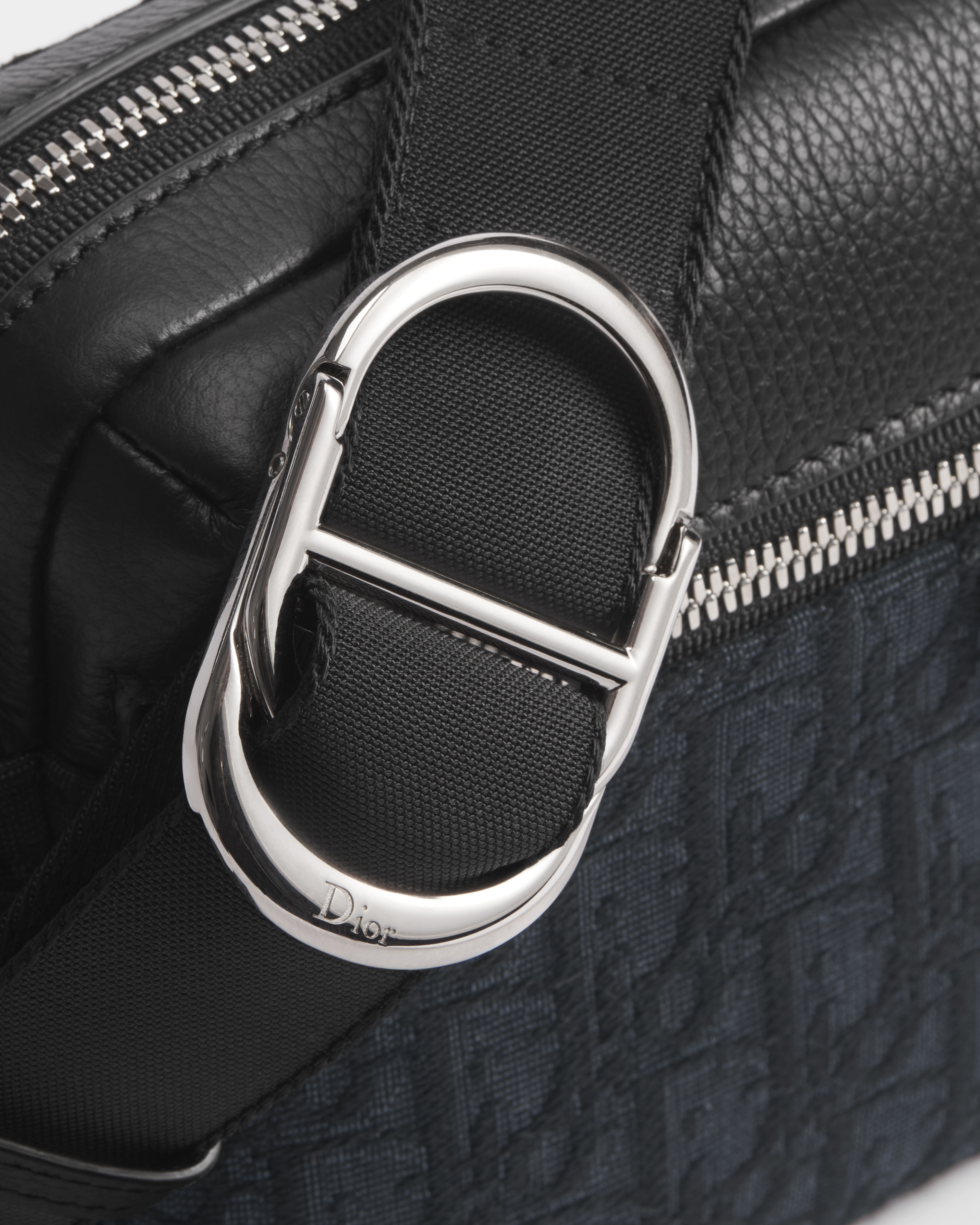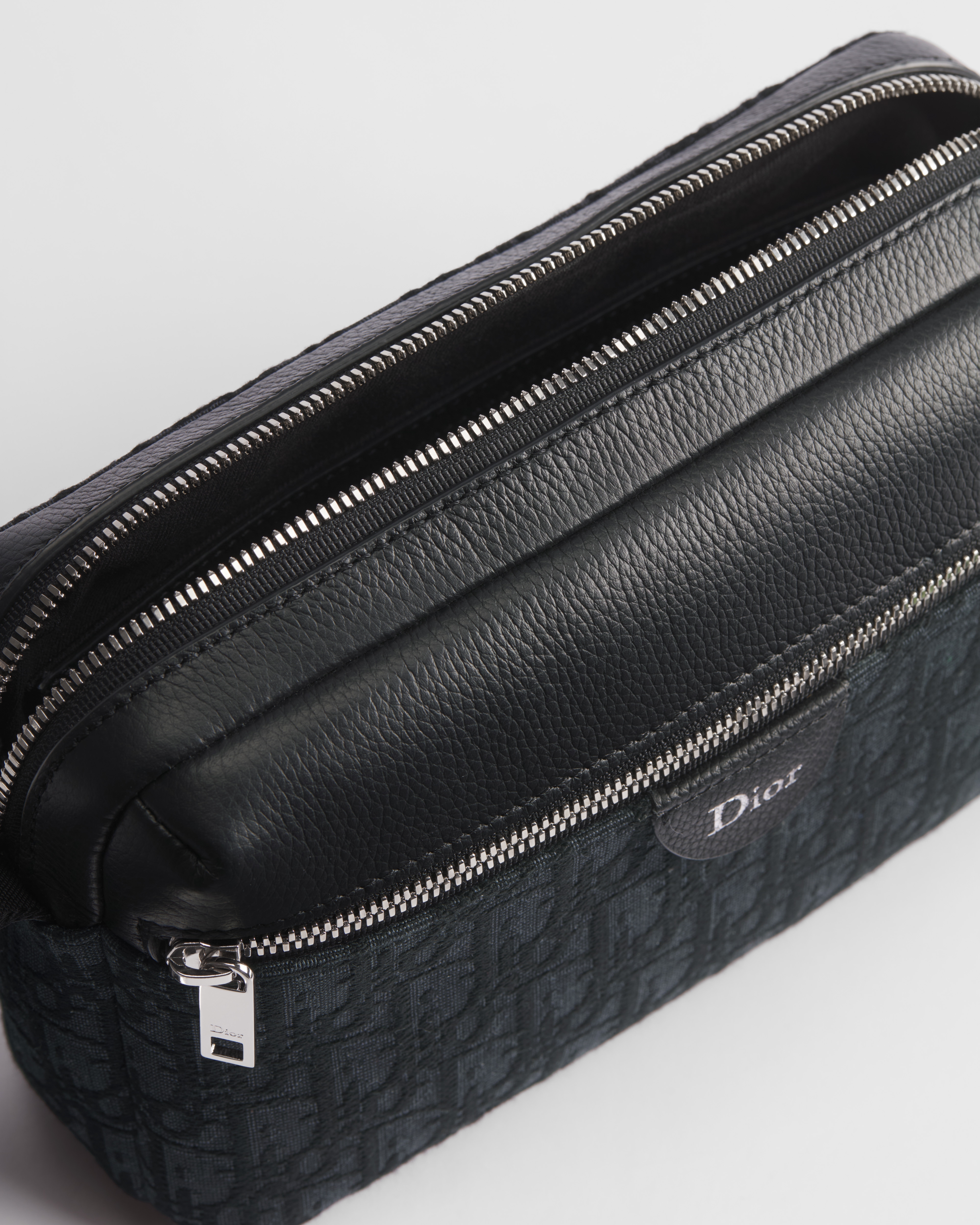 Dior Oblique Jacquard in Schwarz und genarbtes Kalbsleder in Schwarz