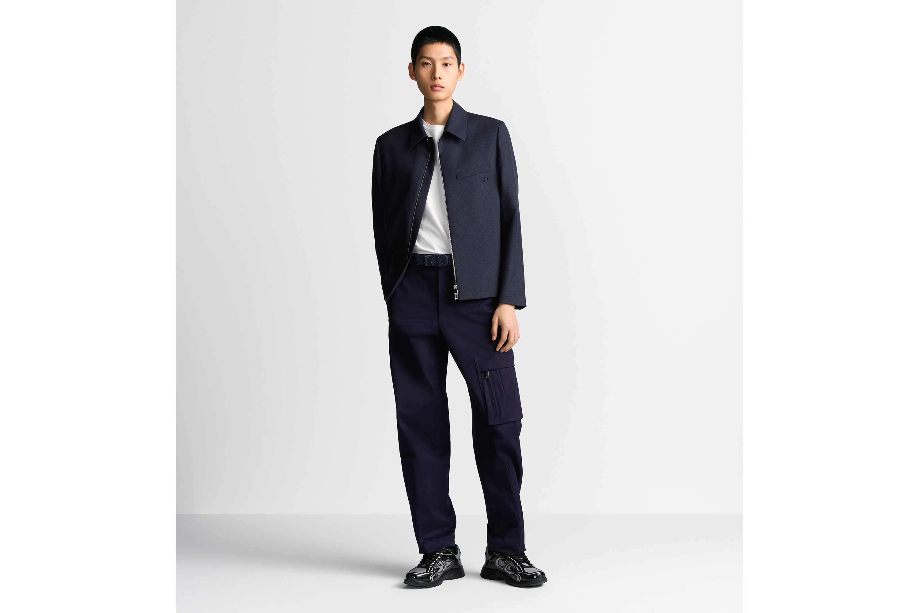 Dior Oblique Jacquard in Marineblau und genarbtes Kalbsleder in Schwarz, 35 mm
