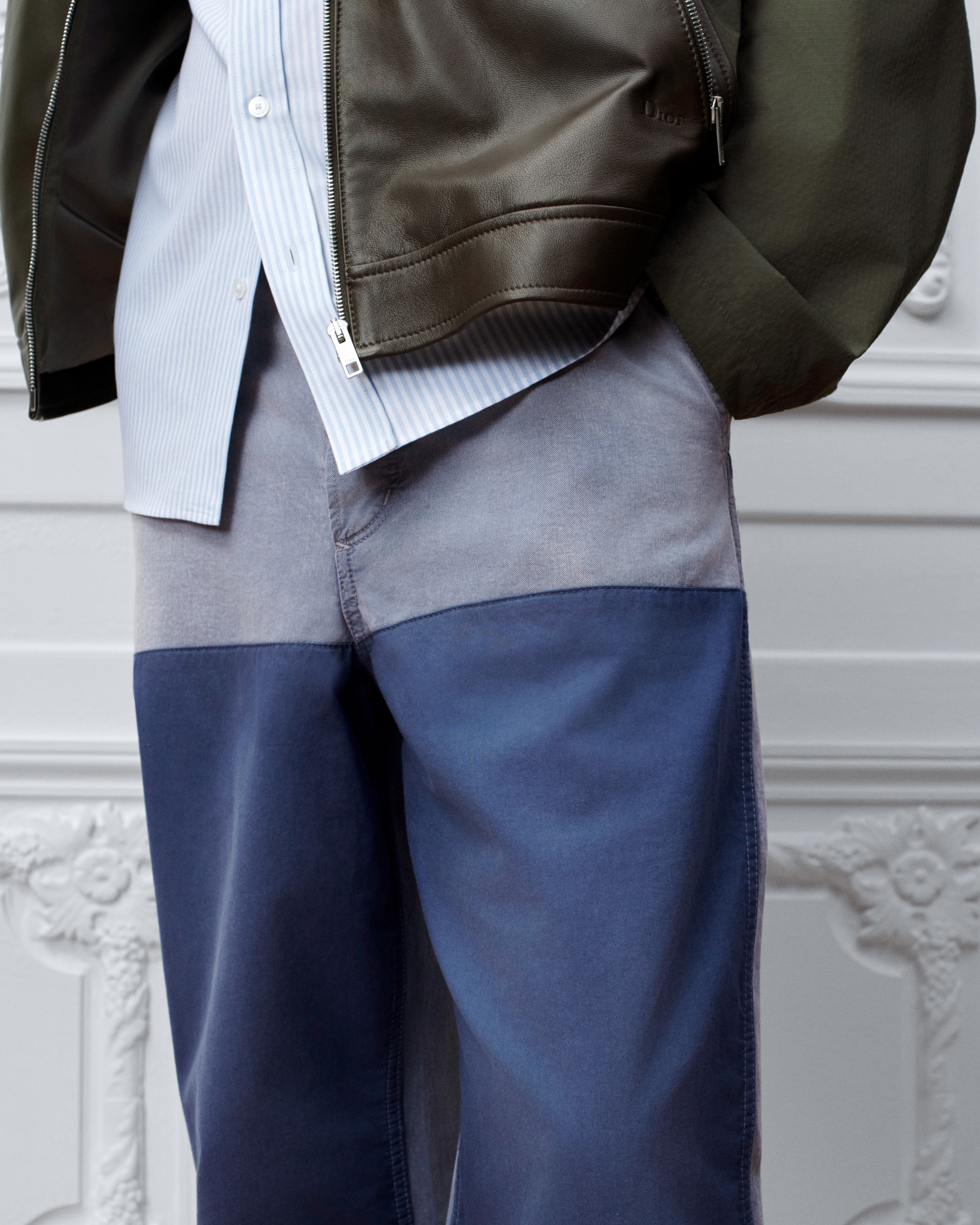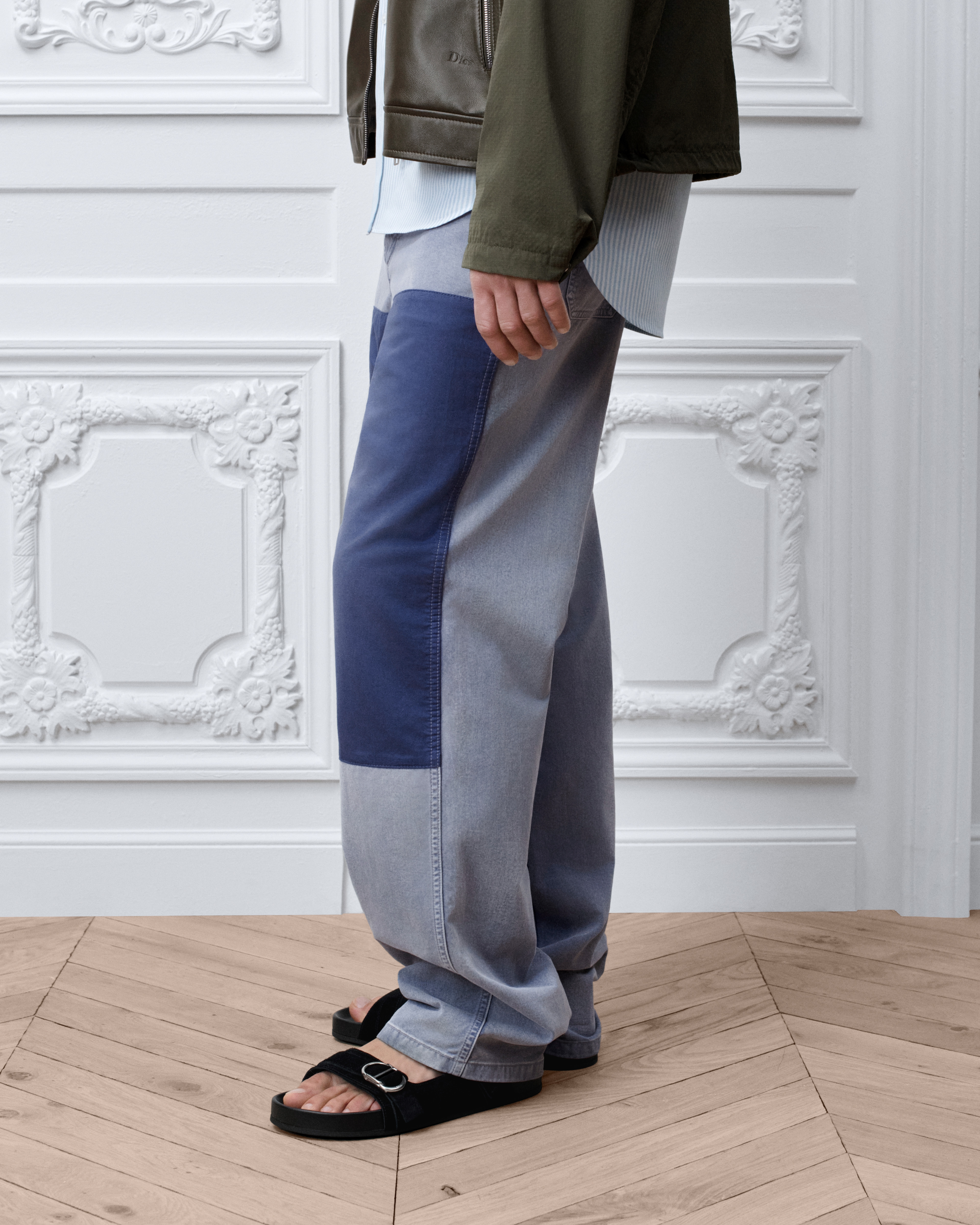 Die Workwear-Jeans von Dior mit weitem Hosenbein haben eine Beinlänge von 113 cm (Größe 31)