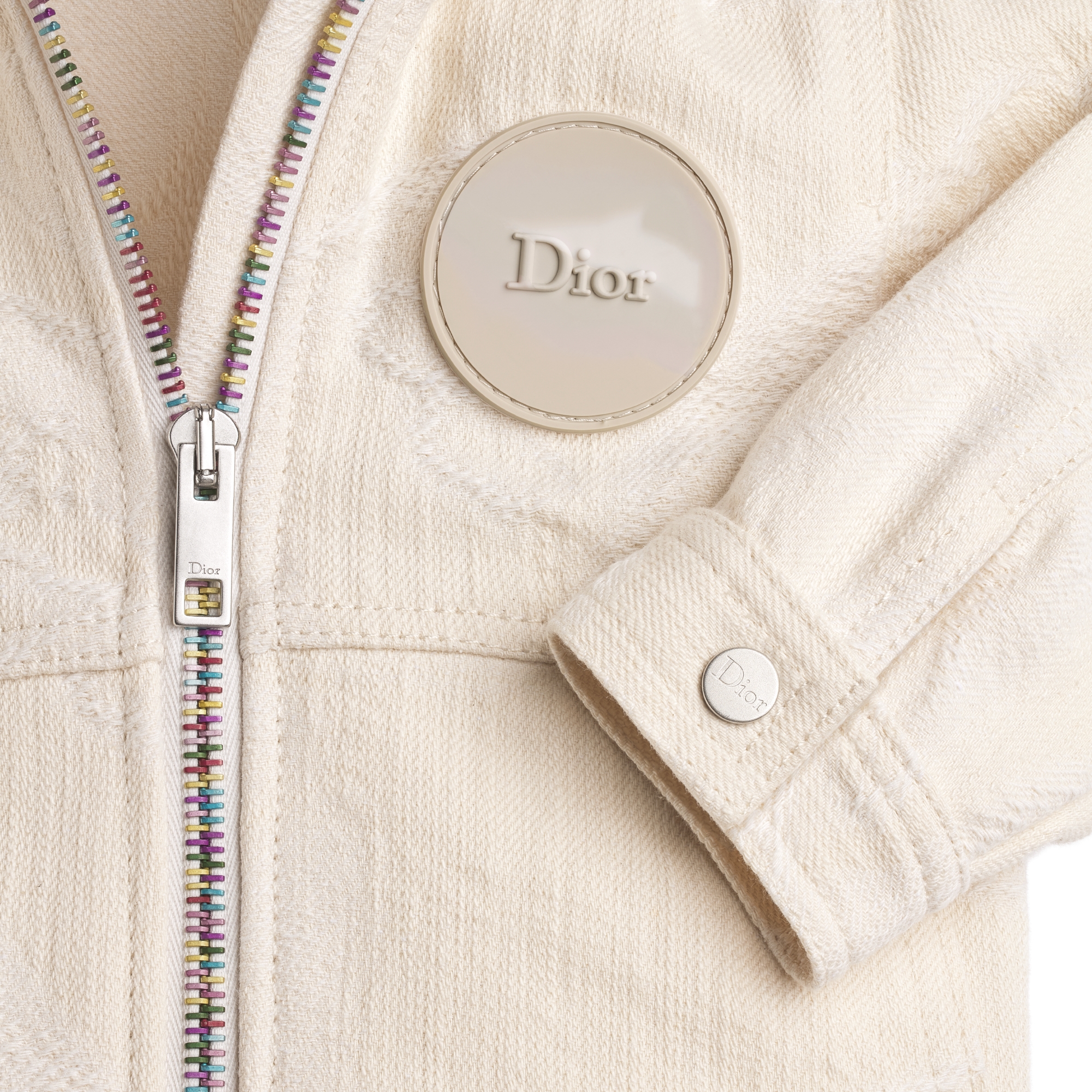 Mehrfarbiger Gummiaufnäher mit erhabenem Dior Schriftzug auf der Vorderseite links