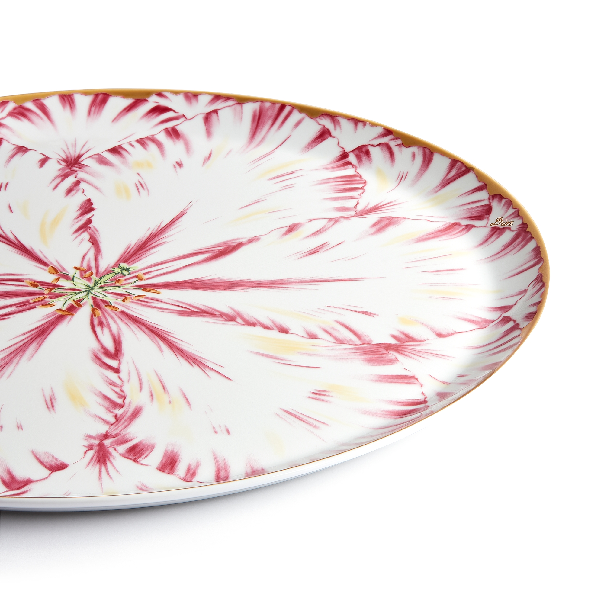 Limoges-Porzellan mit Champs de Tulipes Motiv in Rosa und 24-karätigem Gold, Alexia Lignon für Dior