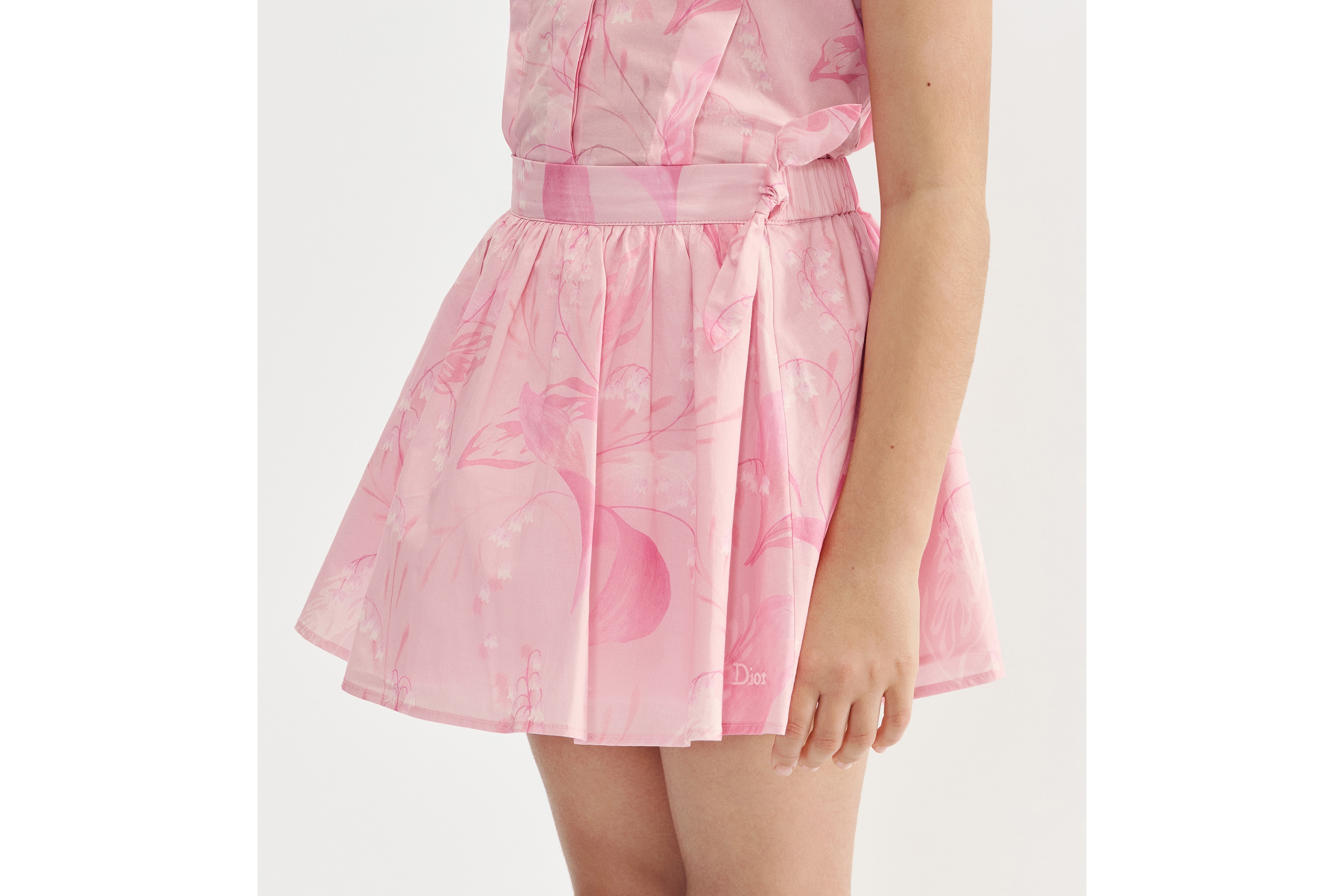Baumwollpopelin mit Lily of the Valley Motiv in Rosa