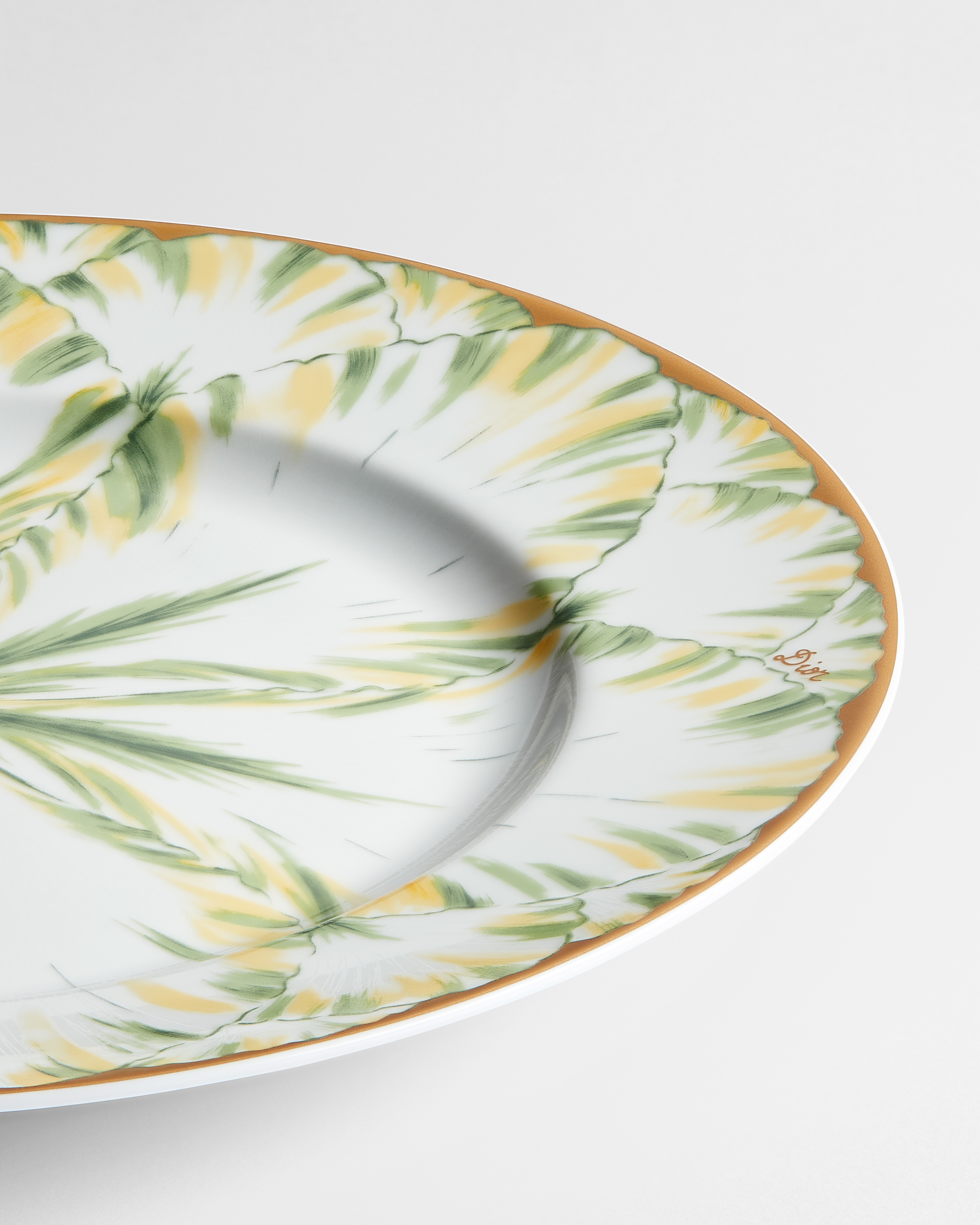 Limoges-Porzellan mit Champs de Tulipes Motiv in Grün und 24-karätigem Gold