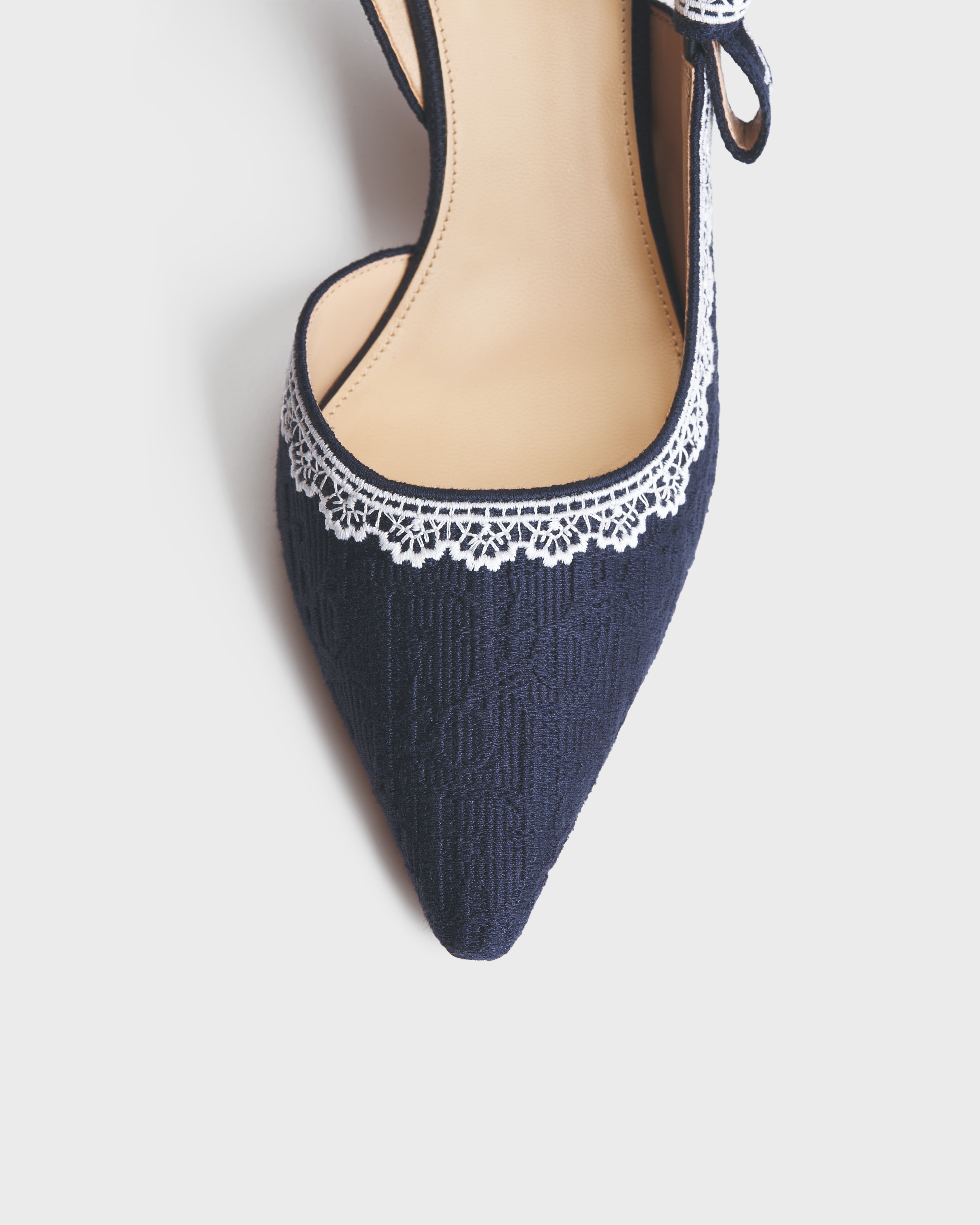 Dior Oblique Baumwolle mit Stickerei in Blau und Spitze in Weiß