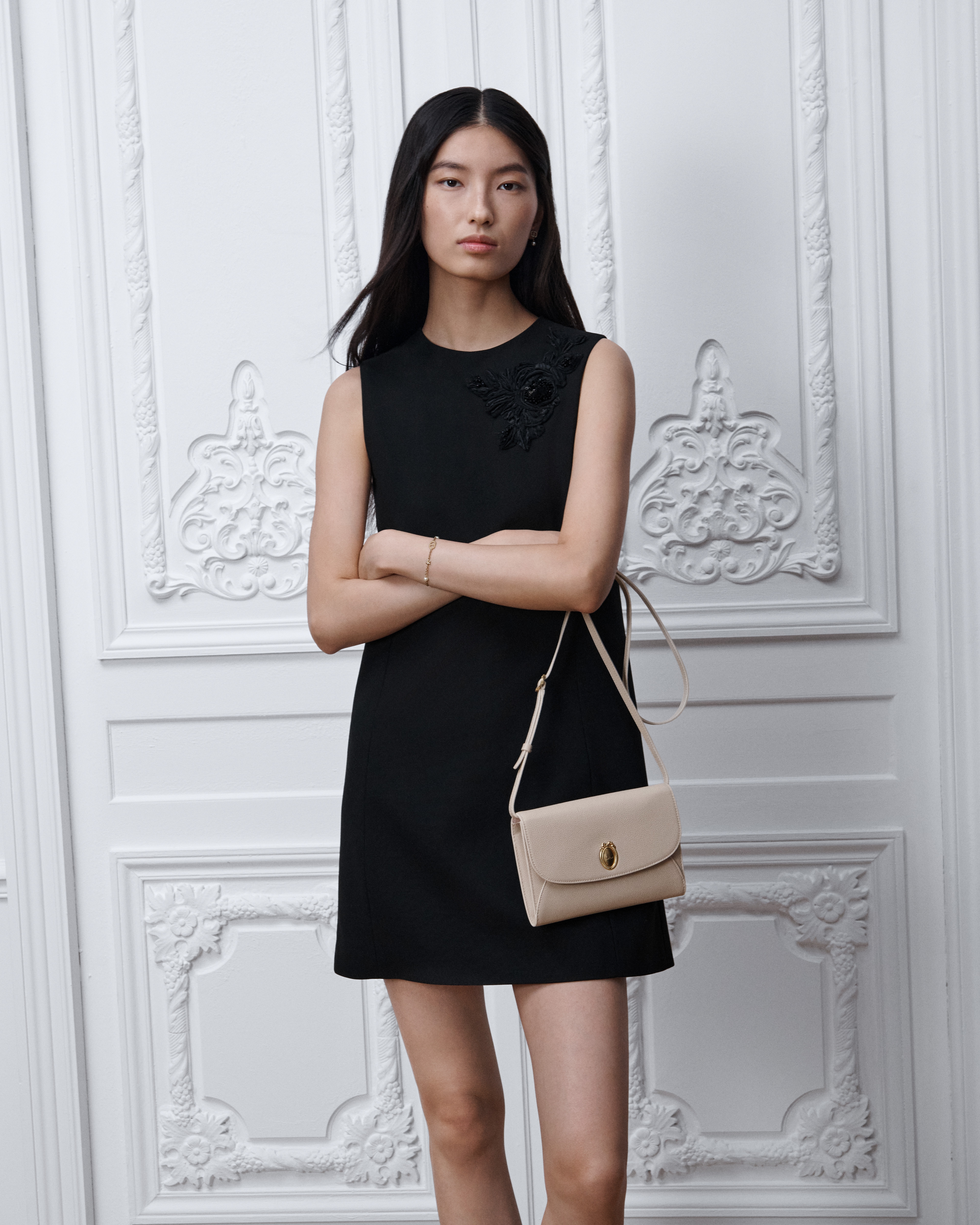 Die Dior Médaillon Pouch mit Riemen zeichnet sich durch eine praktische Umschlag-Silhouette aus – ein kompaktes und vielseitiges Design für den Alltag. Sie ist mit dem Dior Médaillon Verschluss verziert, der an die eleganten Dior Salons im Rokoko-Stil des 18. Jahrhunderts erinnert, und verfügt über ein kontrastierendes Inneres sowie einen verstellbaren und abnehmbaren Lederriemen, sodass das Accessoire in der Hand, über der Schulter oder crossbody getragen werden kann.