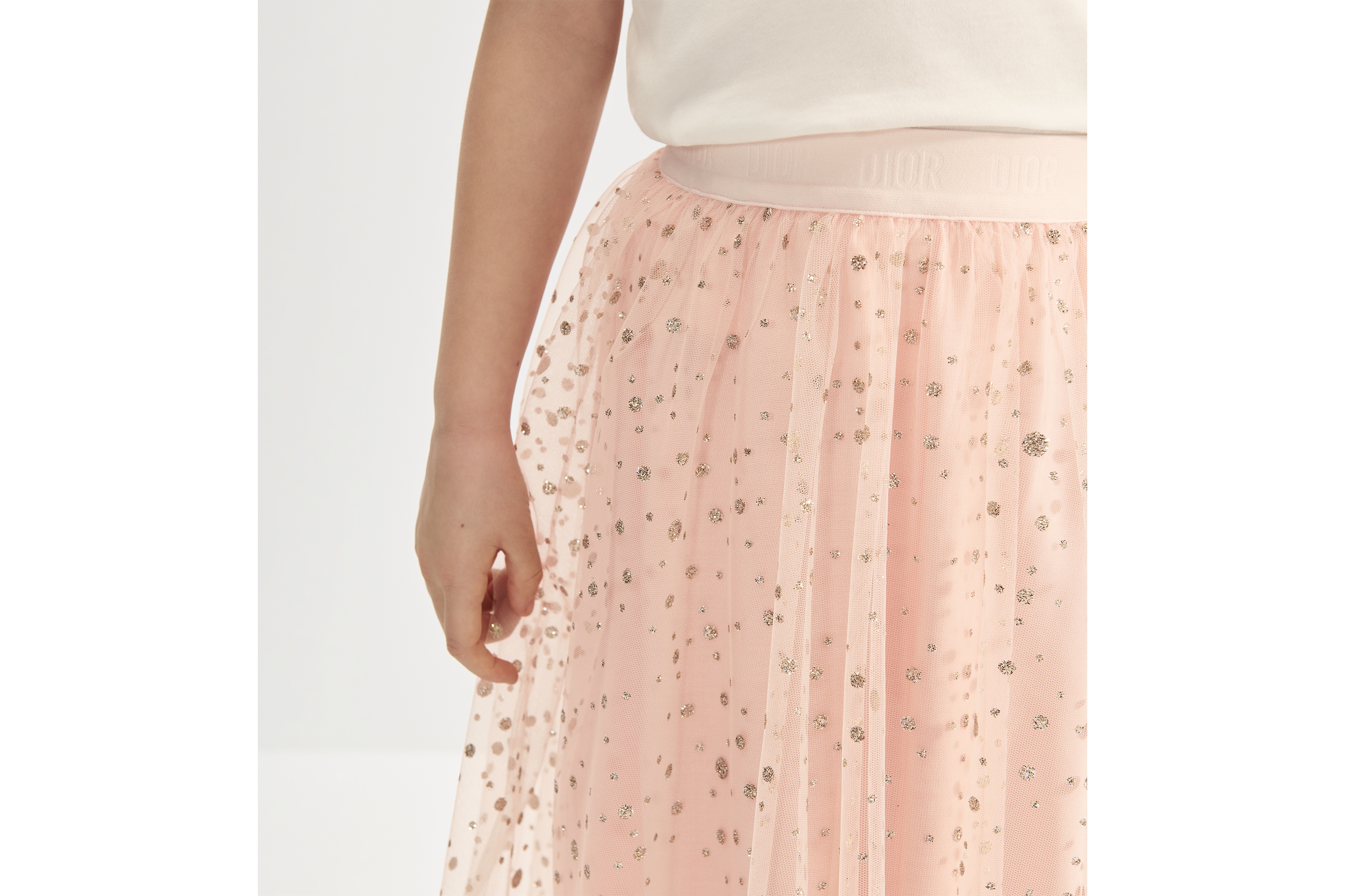 Peach Blossom Pink Tulle with Gold-Tone Glitter Polka Dots