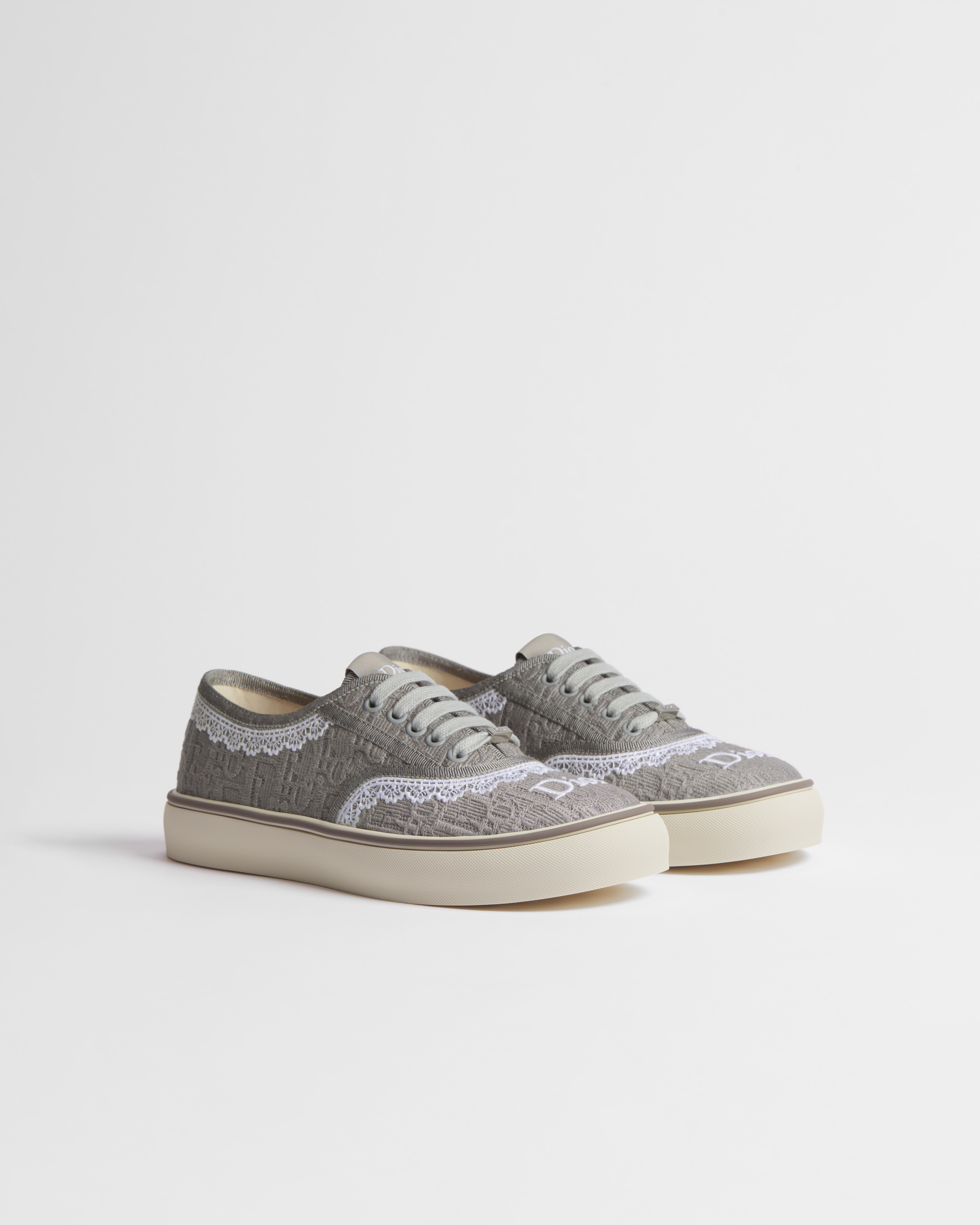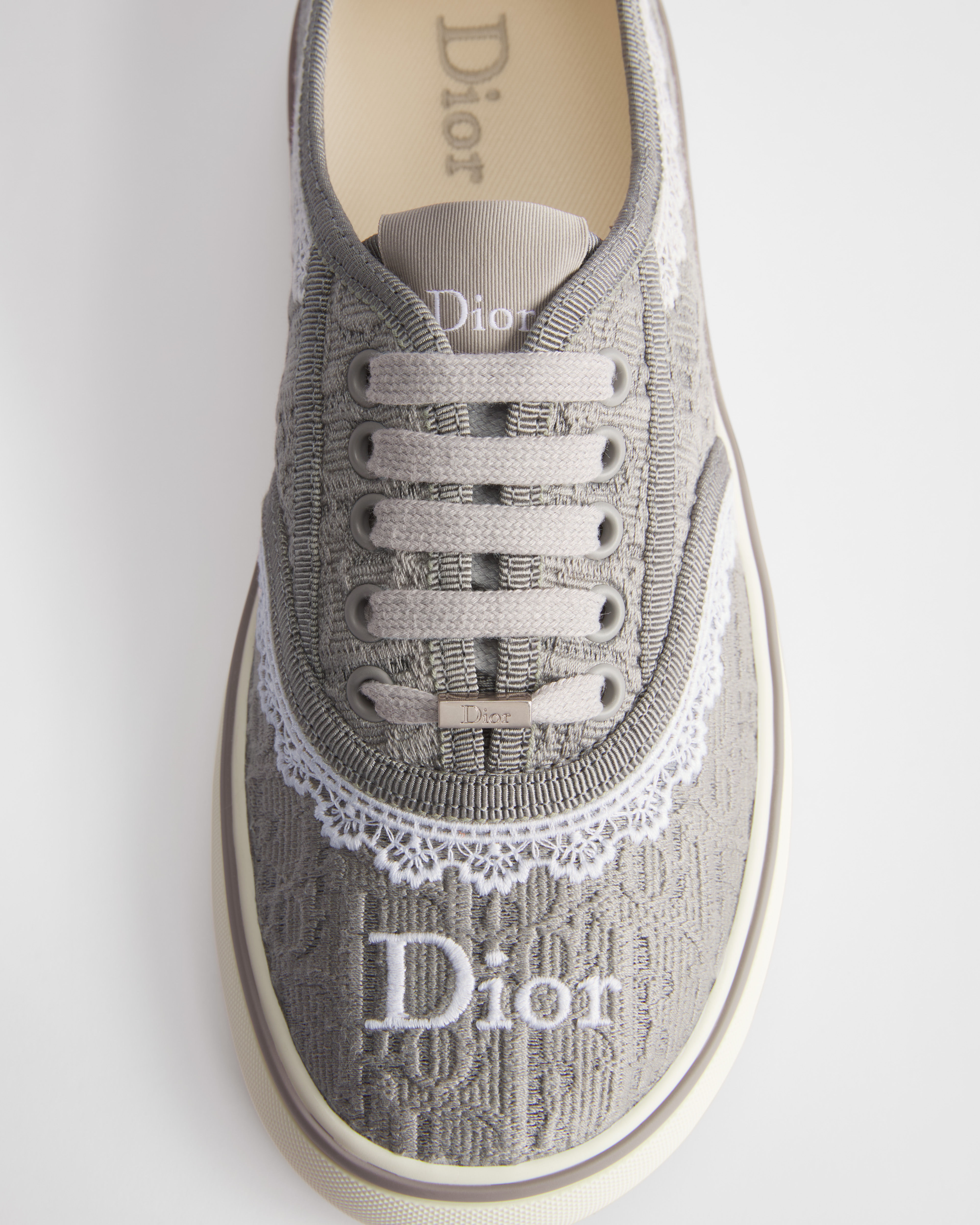 Gris Trianon Dior Oblique Embroidered Cotton and White Lace