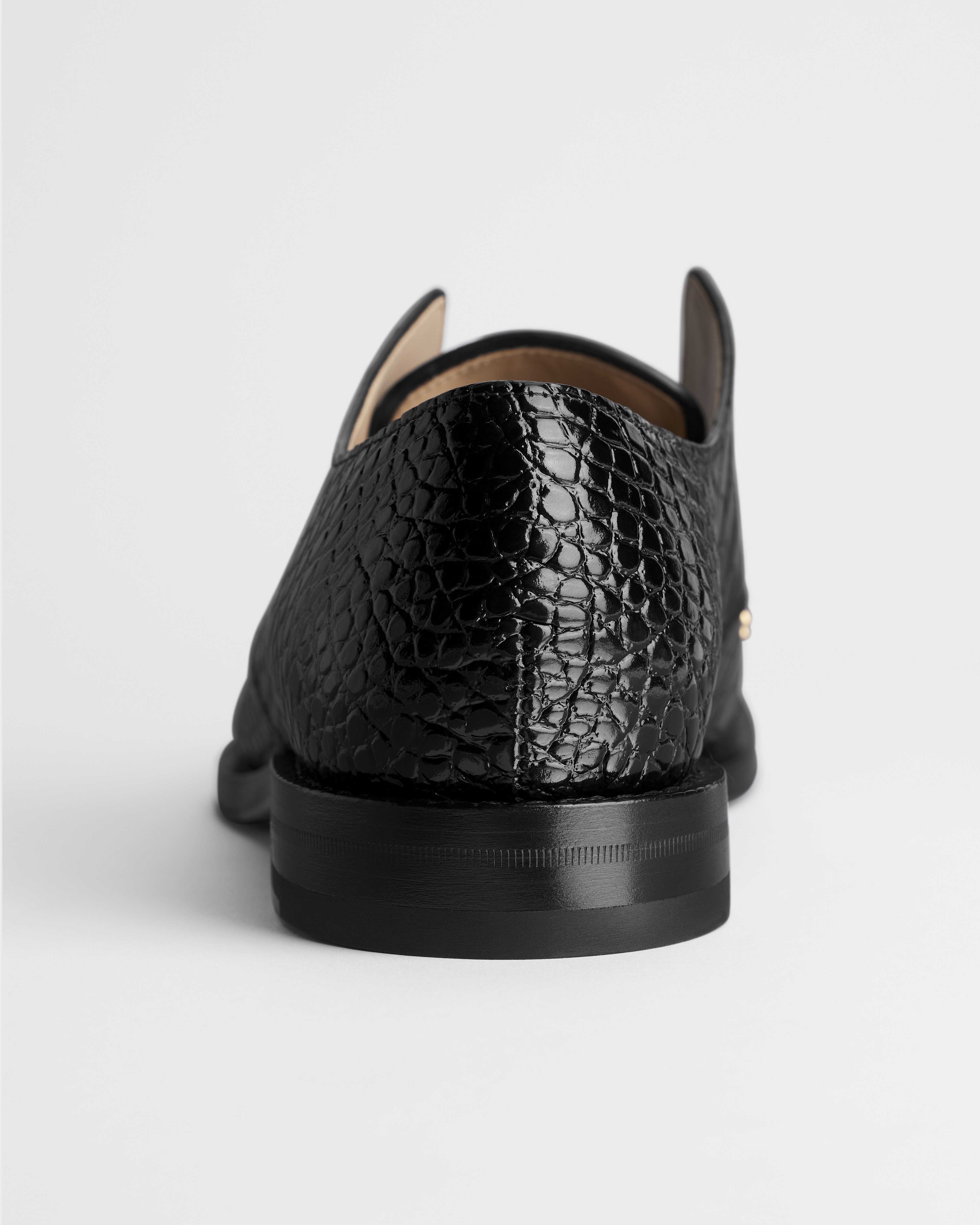 Black Calfskin Printed with Crocodile Motif