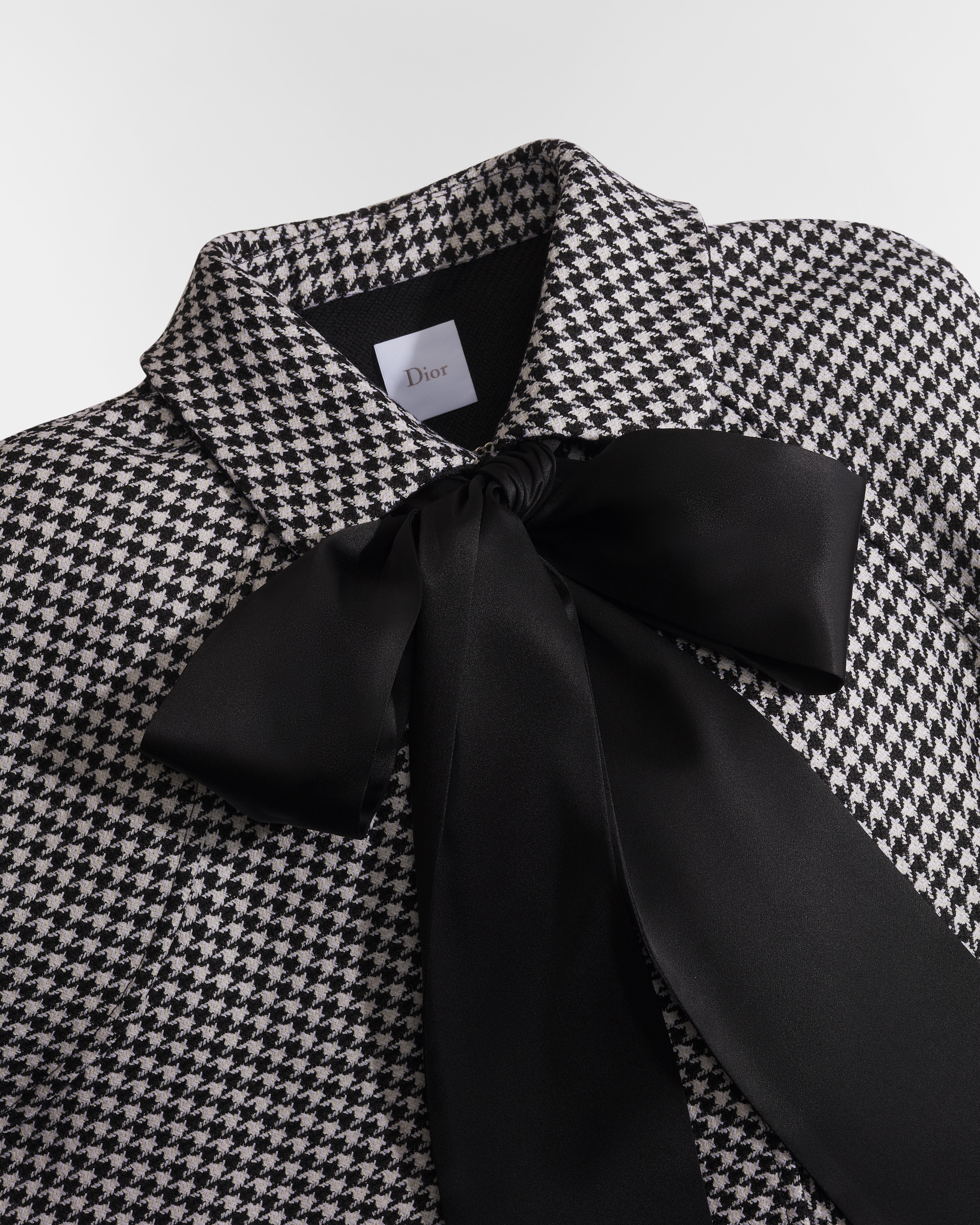 Black and White Houndstooth Silk-Virgin-Wool Blend
