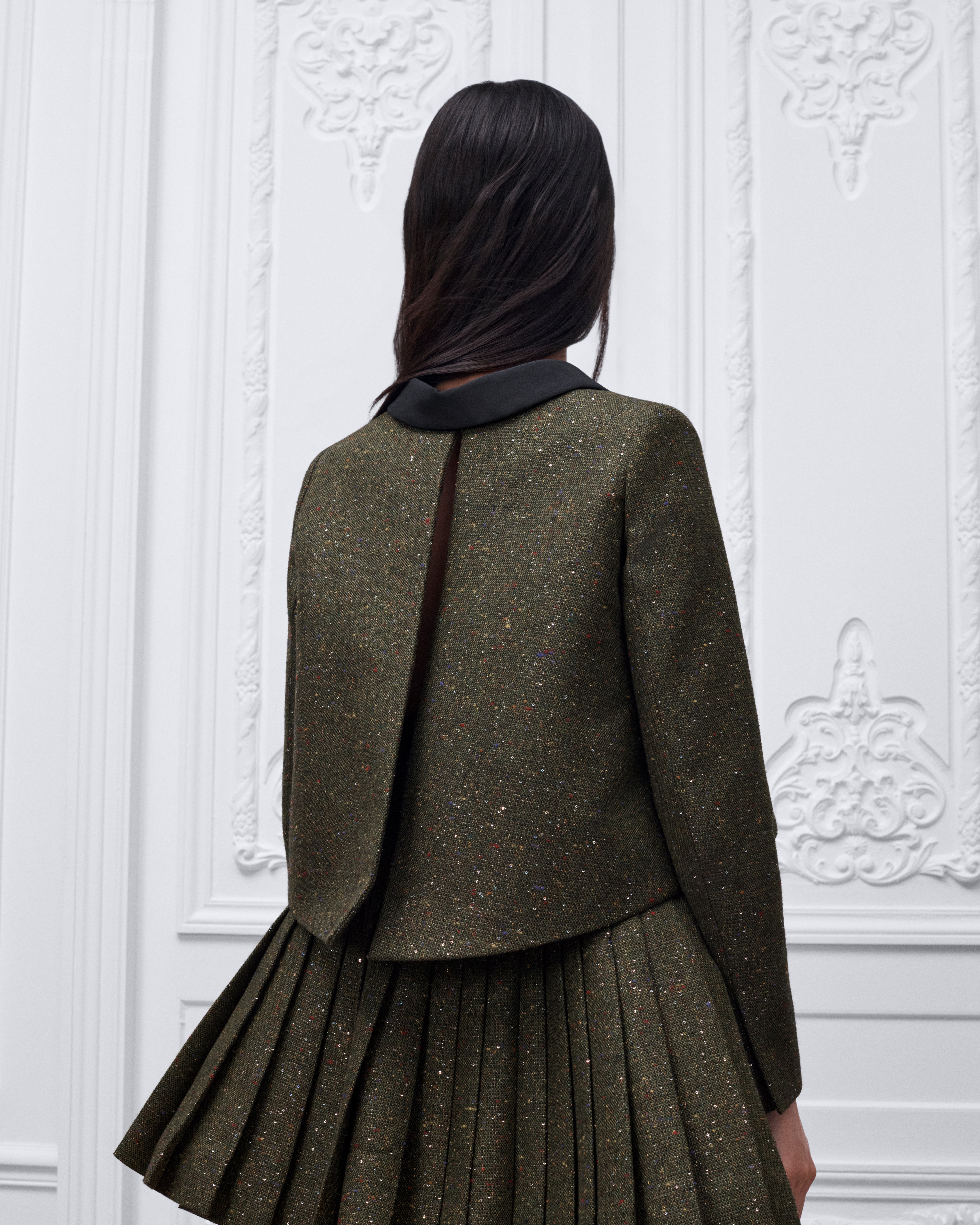 Khaki Silk-Virgin-Wool-Blend Tweed Embroidered with Multicolor Sequins