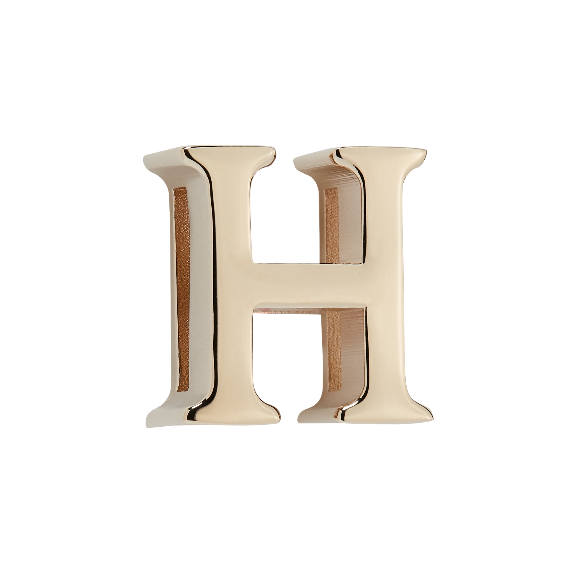 The letter H badge is offered in pale gold-finish metal. The fine creation will add a personal touch to the shoulder strap of a Lady Dior My ABCDior bag or Lady D-Sire My ABCDior bag.