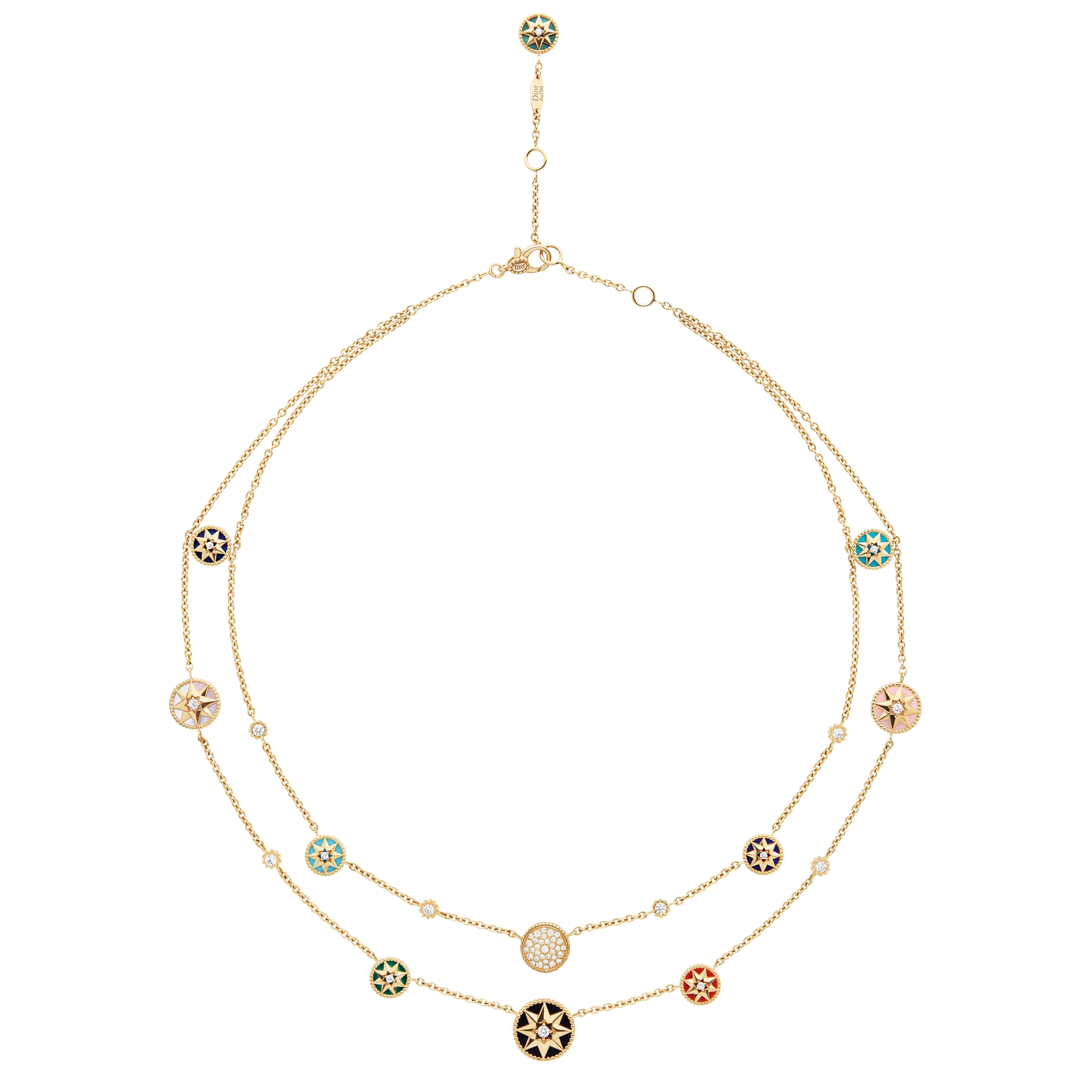 The adjustment rings on the necklace allow it to be worn in a shorter or longer version