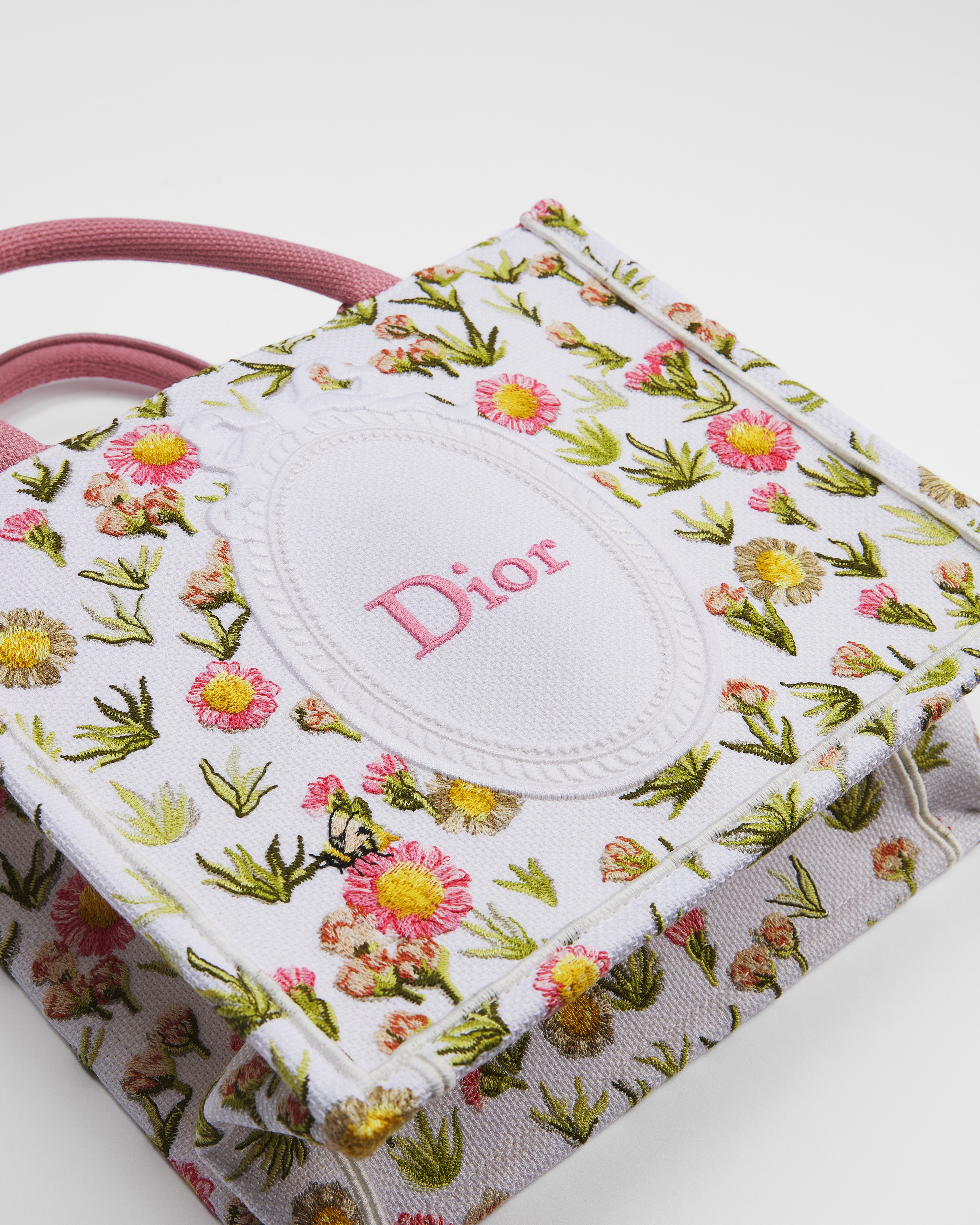 White Multicolor Daisy Garden Embroidery with Dior Médaillon (26.5 x 22 x 14 cm)