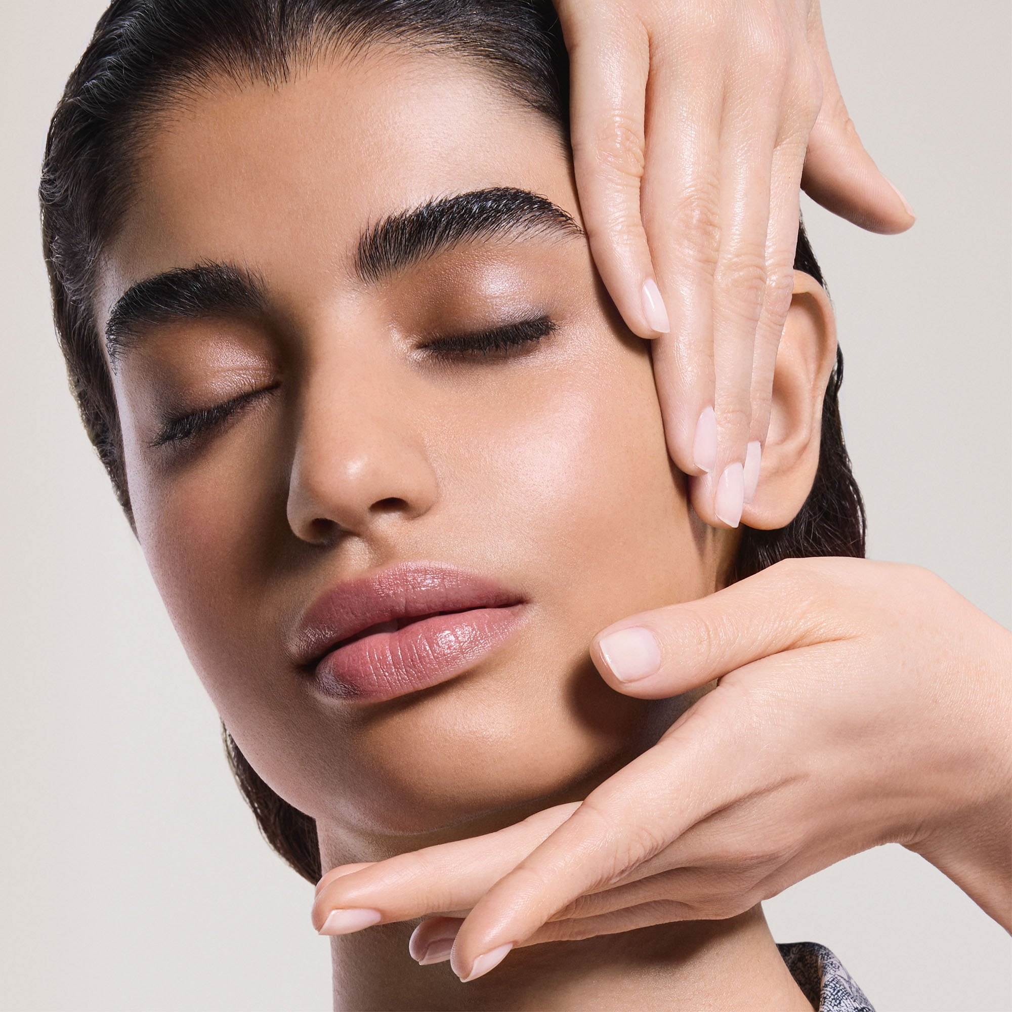 A treatment that visibly targets every dimension of ageing and all areas of the face: contours, eyes, and lips appear lifted.