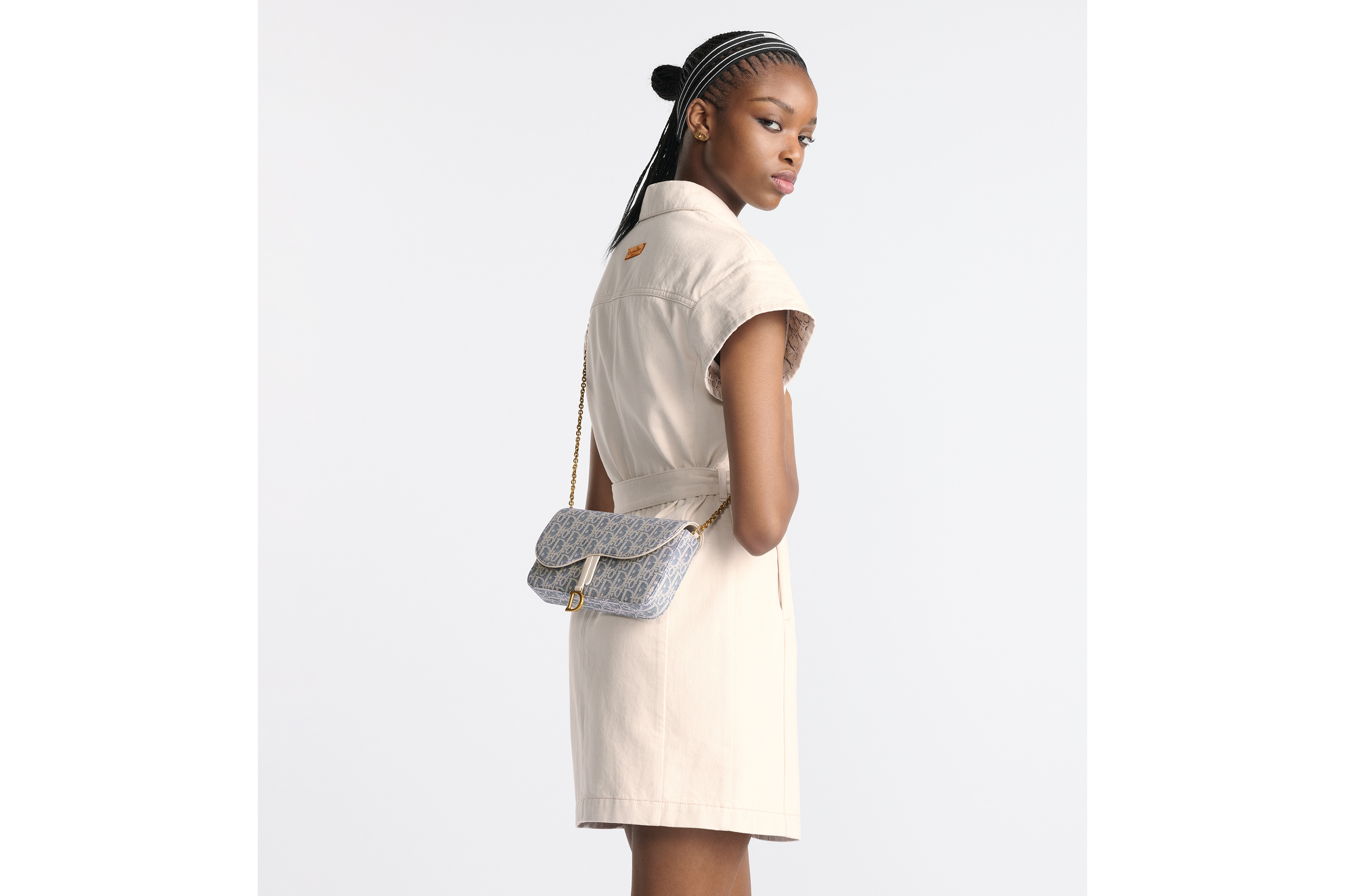 Blue Dior Oblique Chambray with Raffia Effect and Light Biscuit Smooth Calfskin