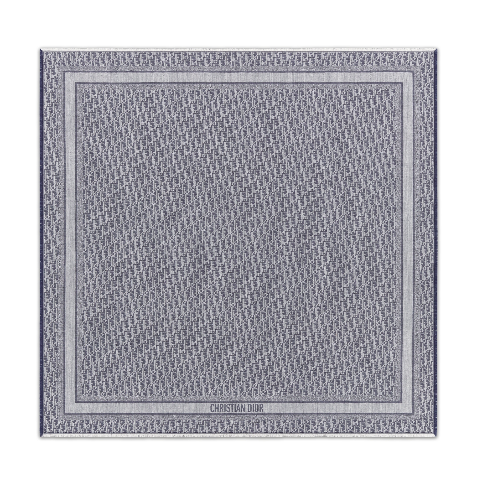 The navy blue Dior Oblique shawl is a timeless design inspired by House tradition. Crafted in a blend of silk, wool and cashmere, the fringed-edge style is embellished with a contrasting jacquard band featuring the Christian Dior signature. The shawl may be worn around the neck or draped over the shoulders.