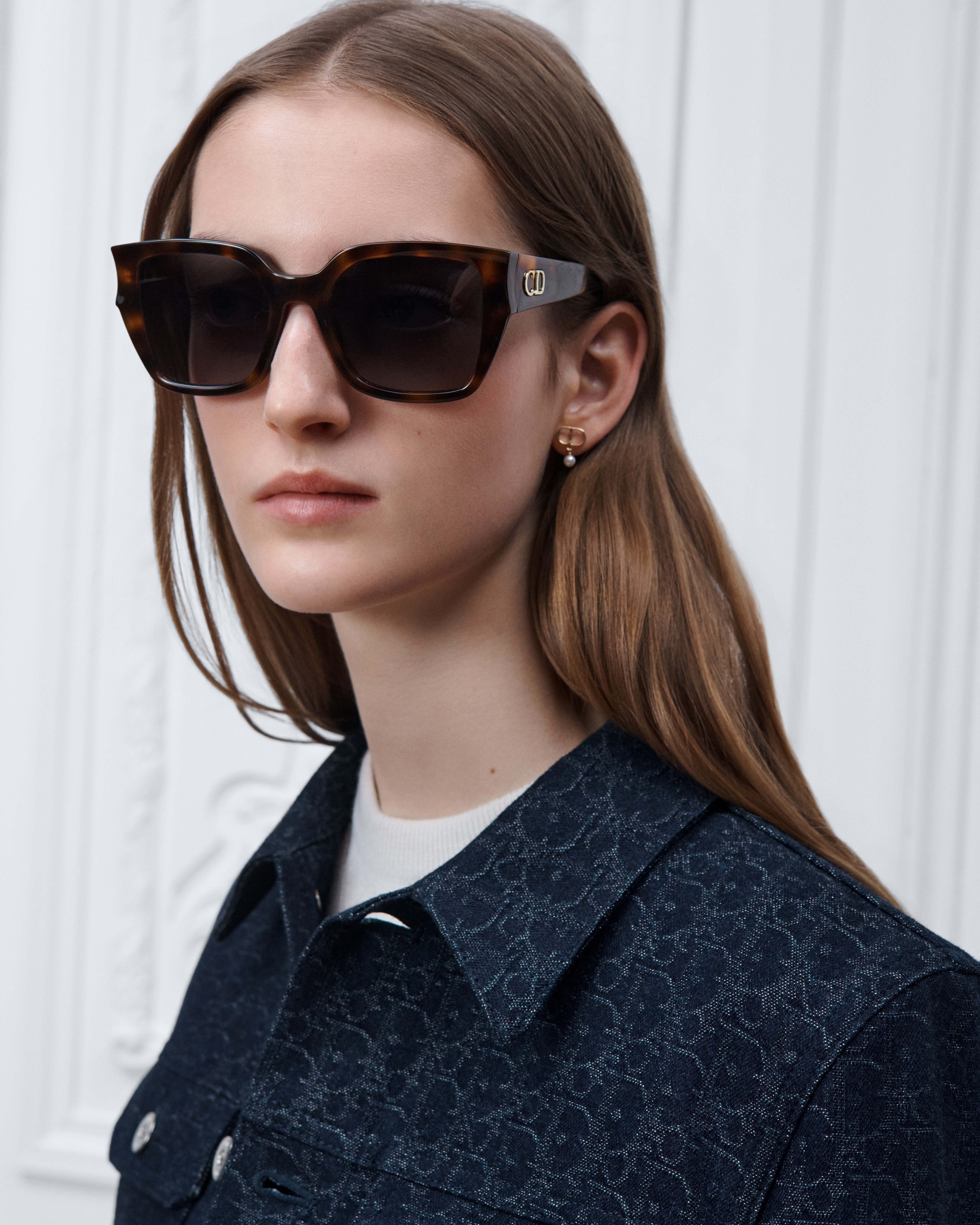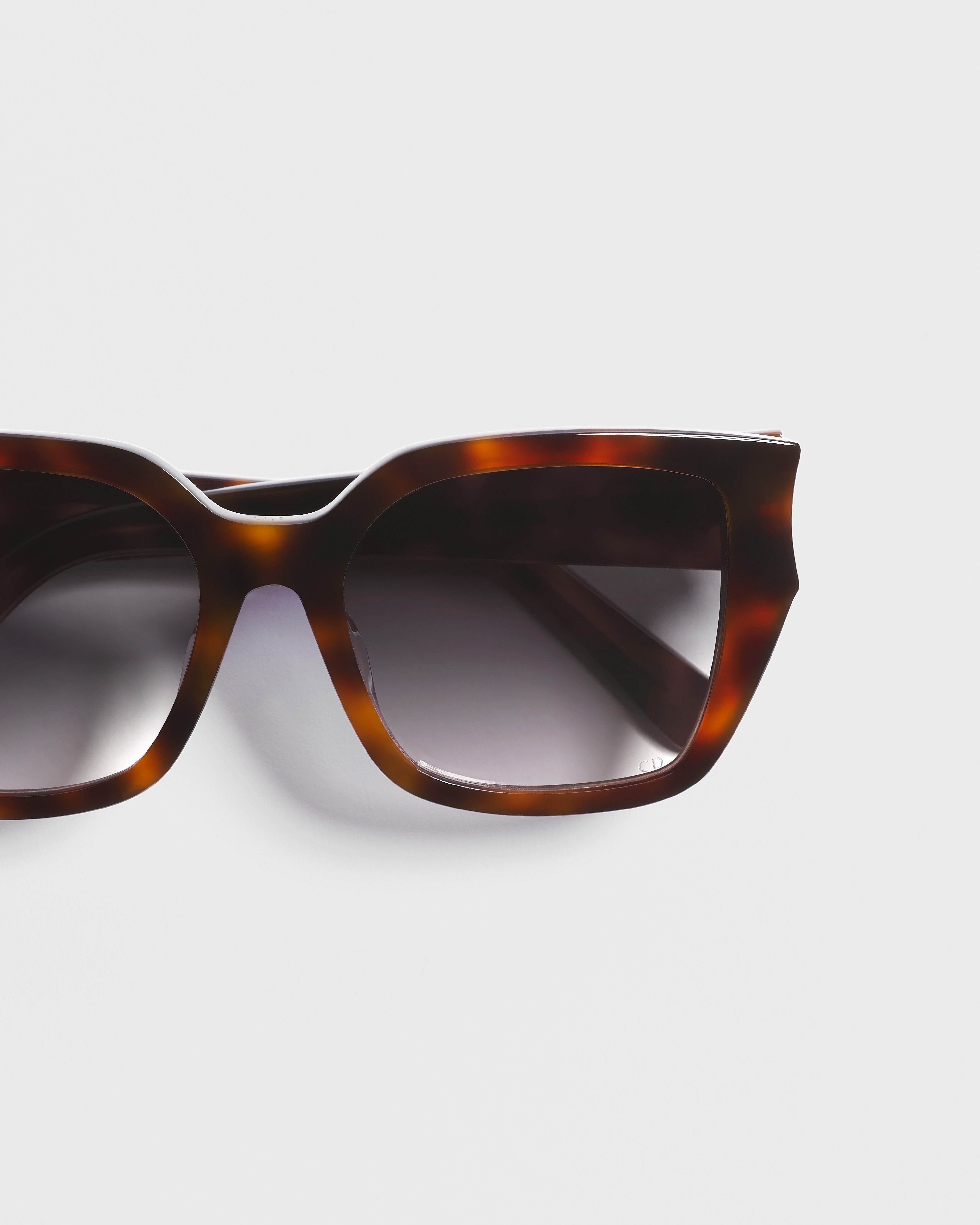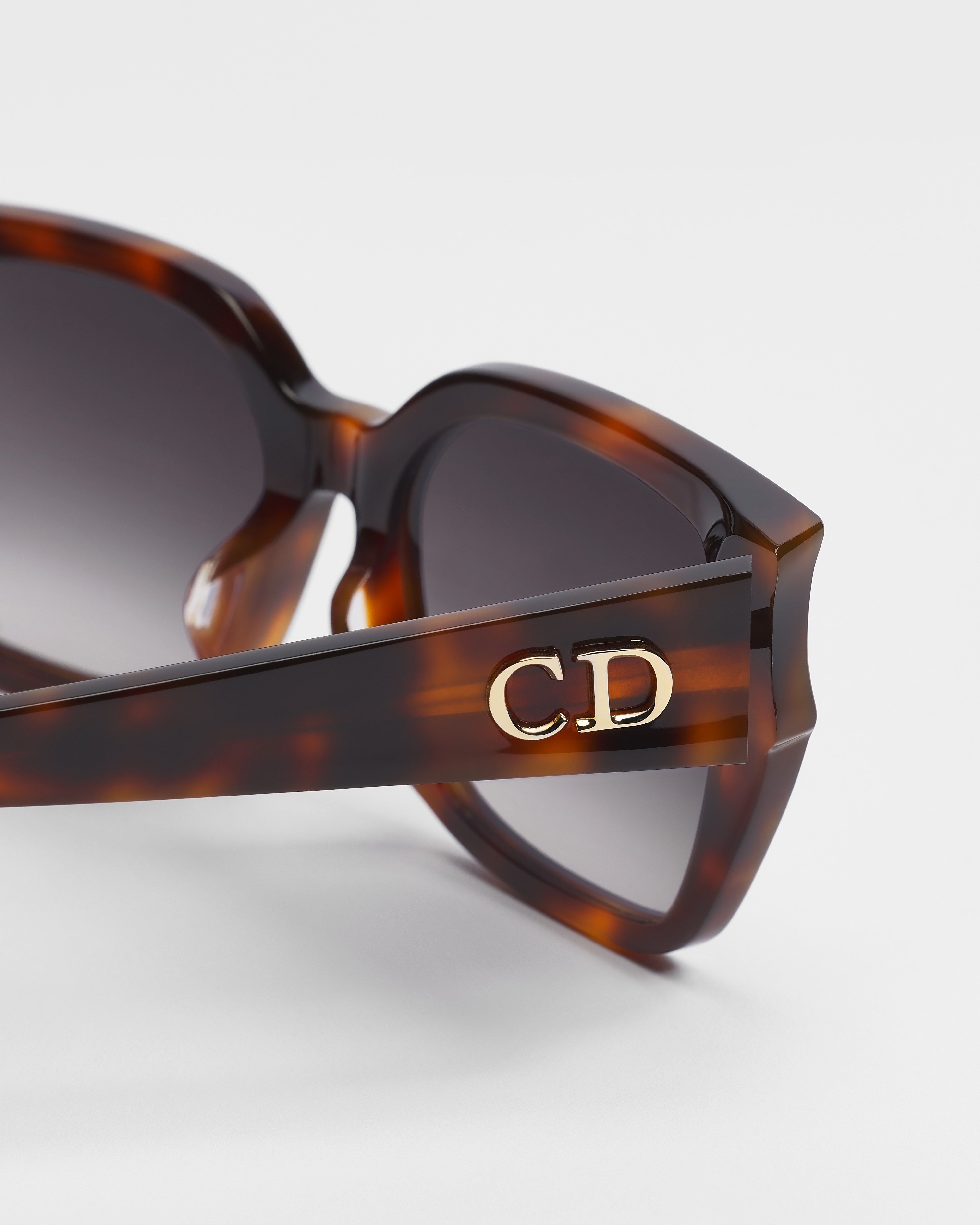 The DiorGlow S1F sunglasses are part of a sleek and sculptural line. The wide square frame in brown tortoiseshell-effect acetate showcases a curved front and the gold-finish metal CD signature on the temples. Completed by gradient gray lenses, the essential accessory will lend a resolutely Dior style to any look.