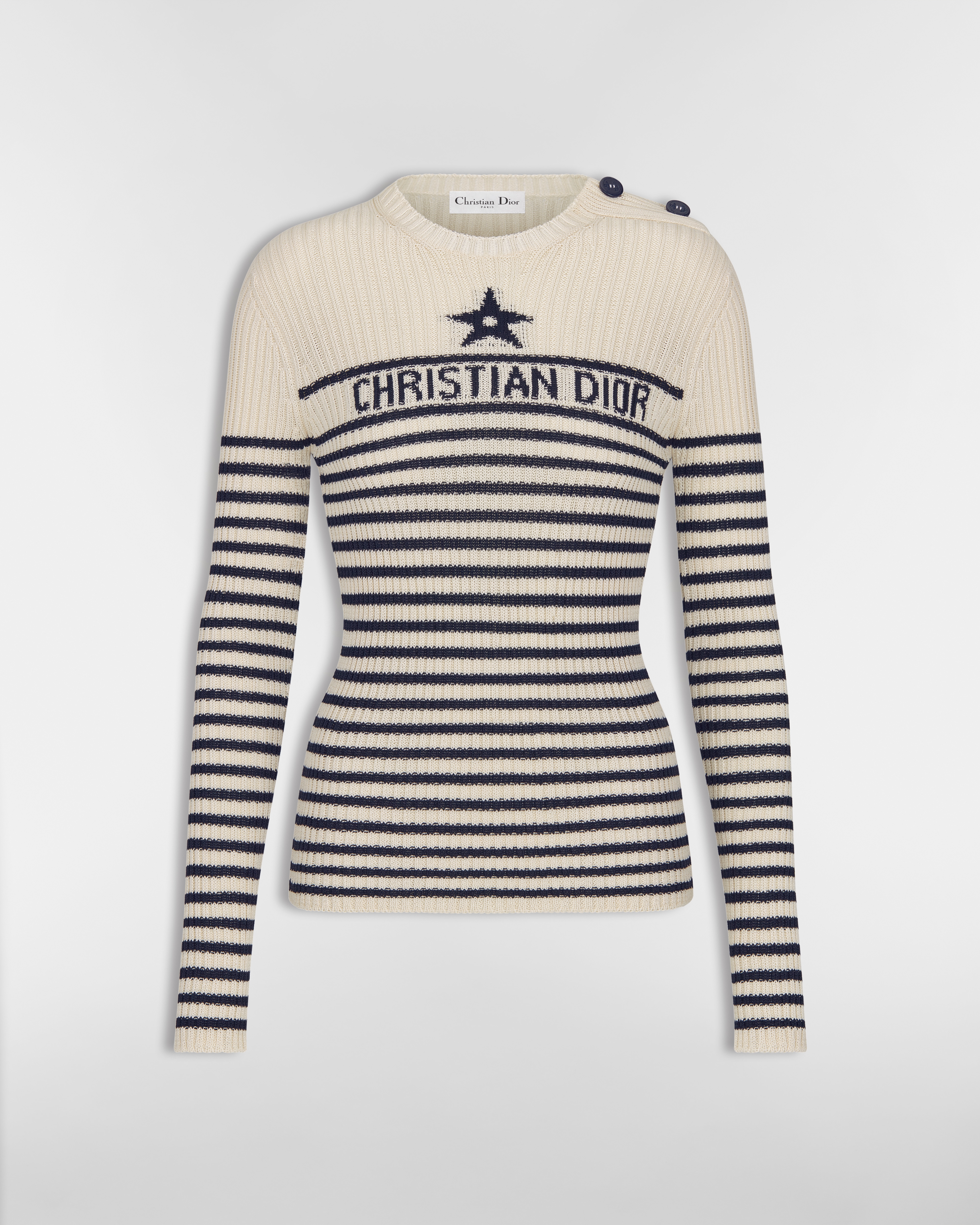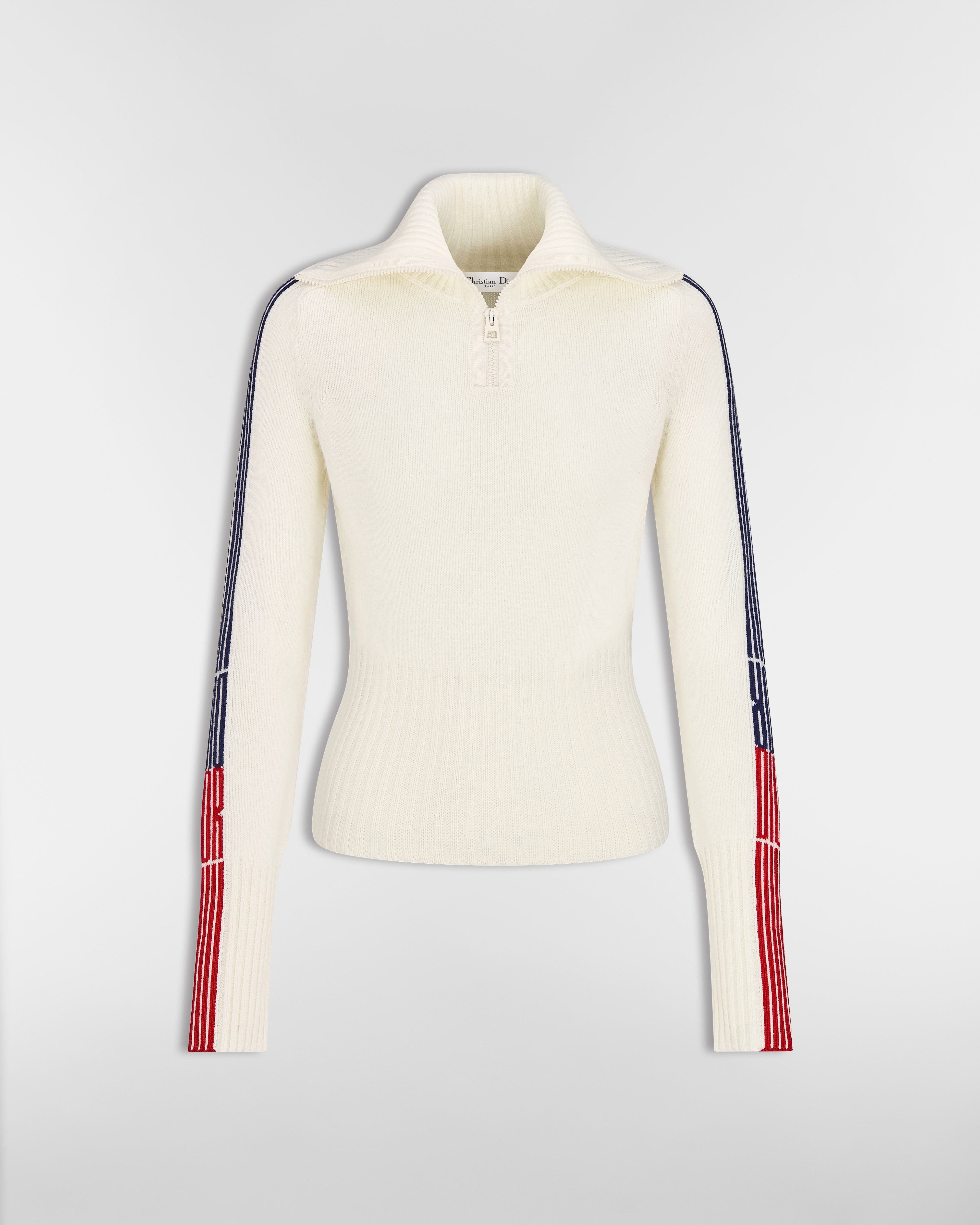 White Virgin Wool and Cashmere Knit with Three-Tone Dior Graphique Motif