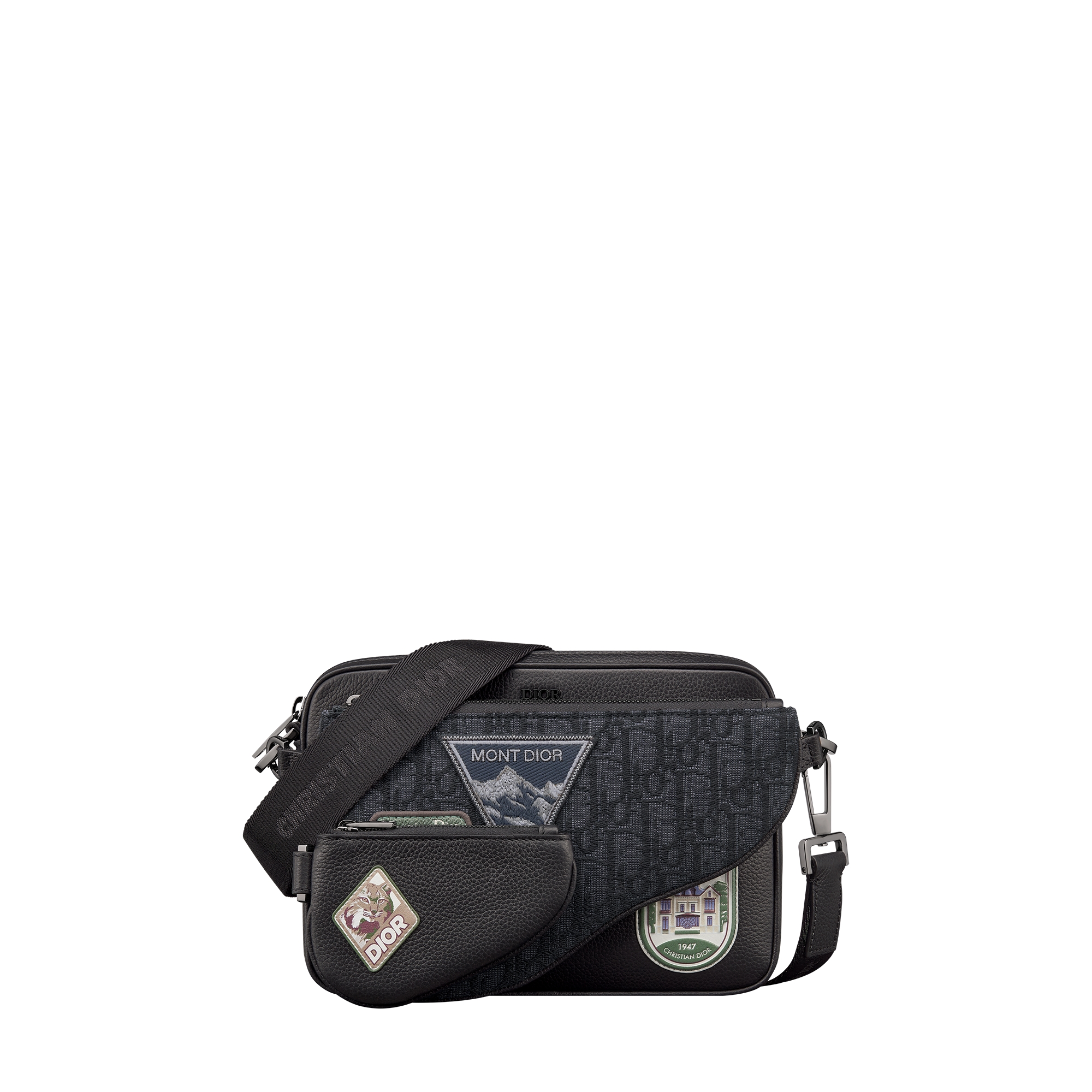 Black Dior Oblique Jacquard, Black Grained Calfskin and Multicolor Dior Mountain Patches