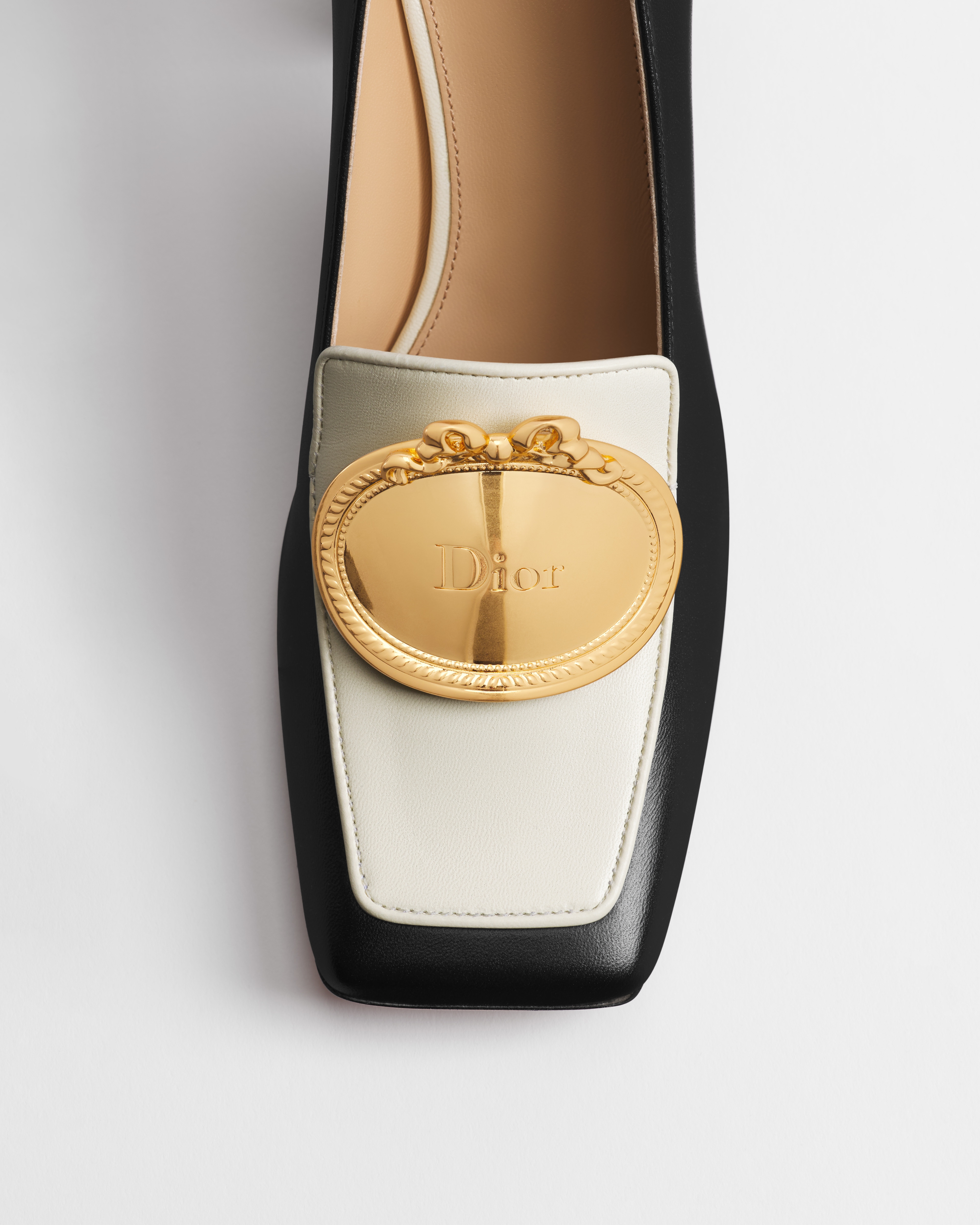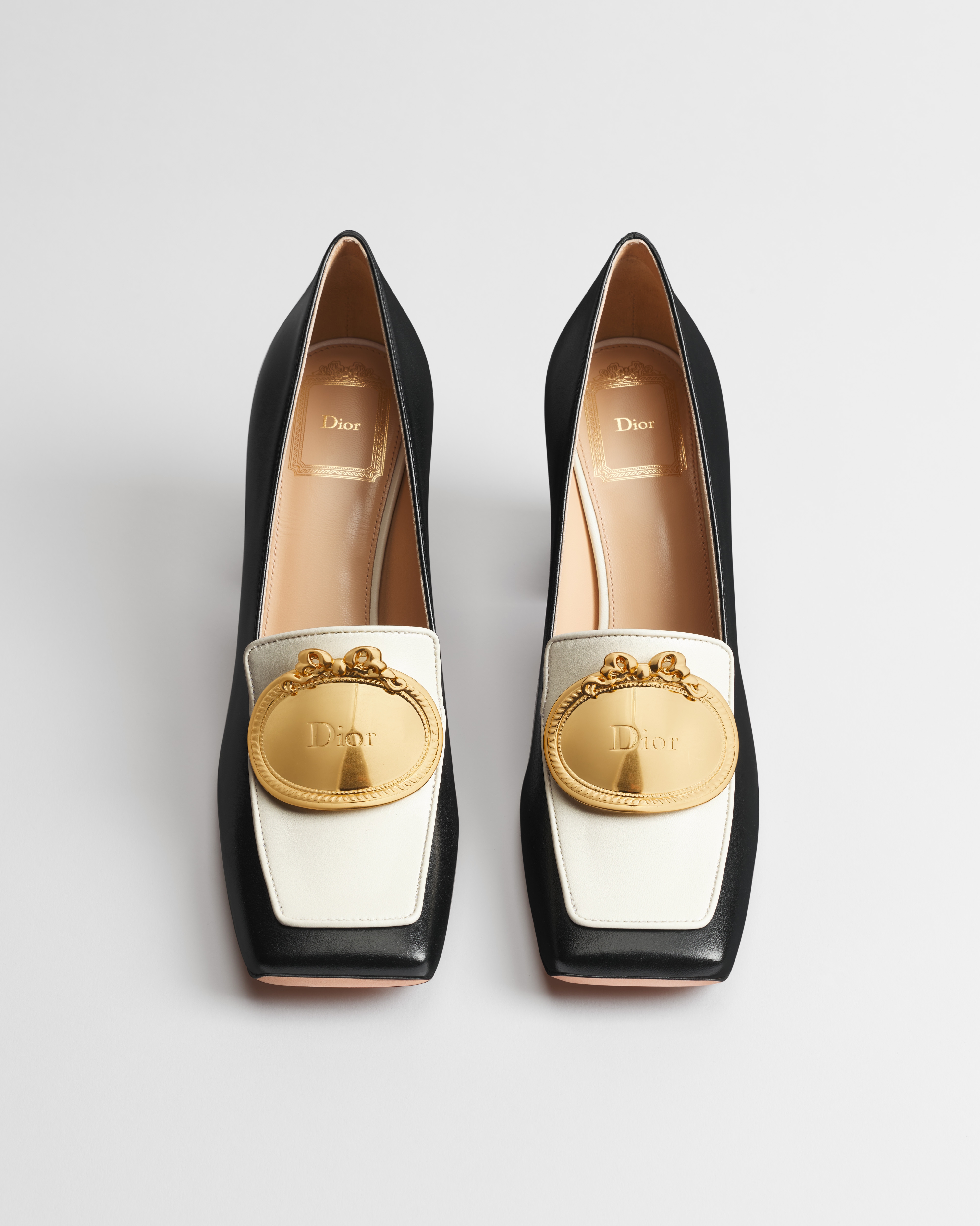 Gold-finish metal Dior Médaillon signature on the vamp