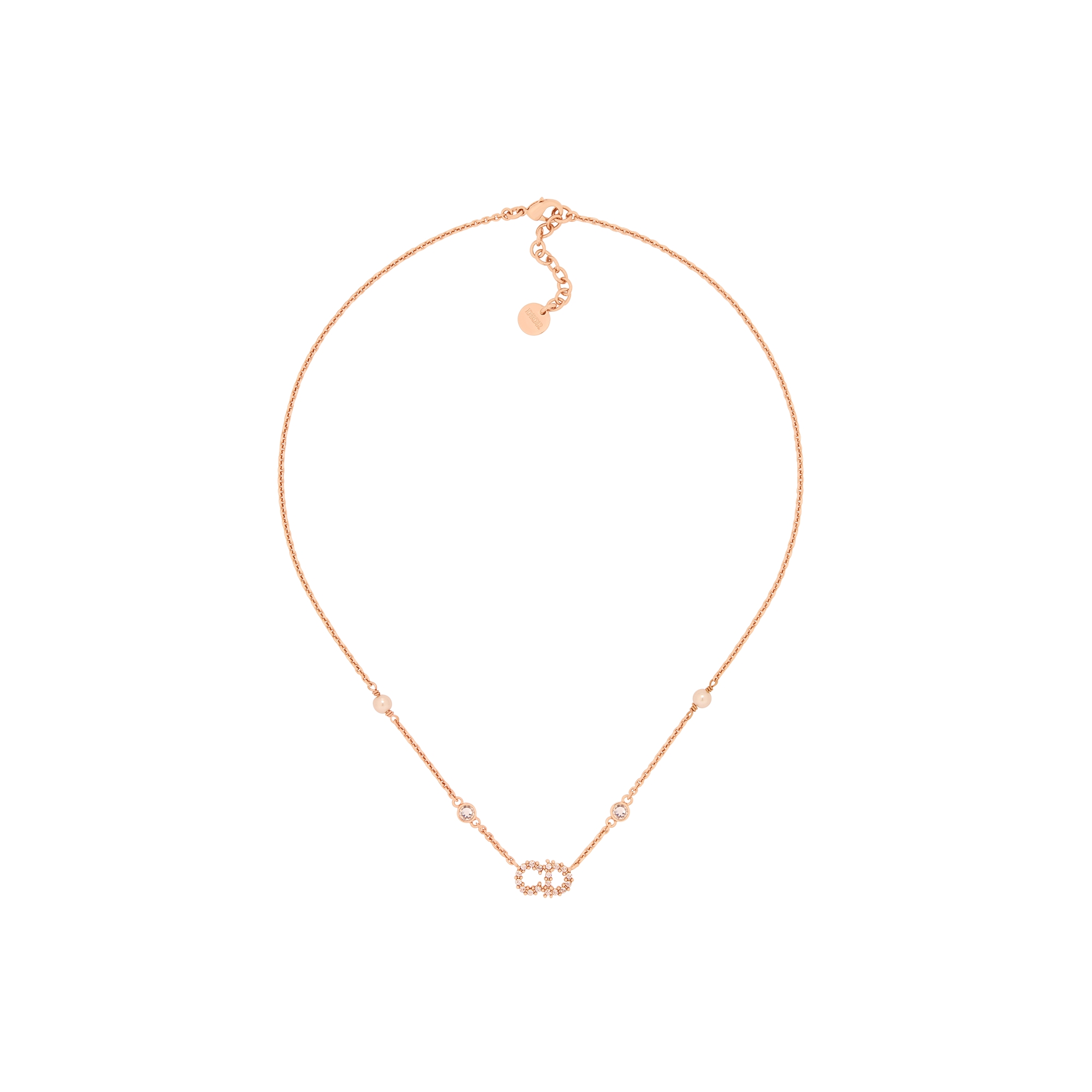 The CD Navy necklace combines timeless elegance with the House's modern aesthetic. The thin pink-finish metal chain is enhanced by the CD signature and an iridescent pink resin pearl at its end. The refined necklace can be coordinated with other CD Navy creations.