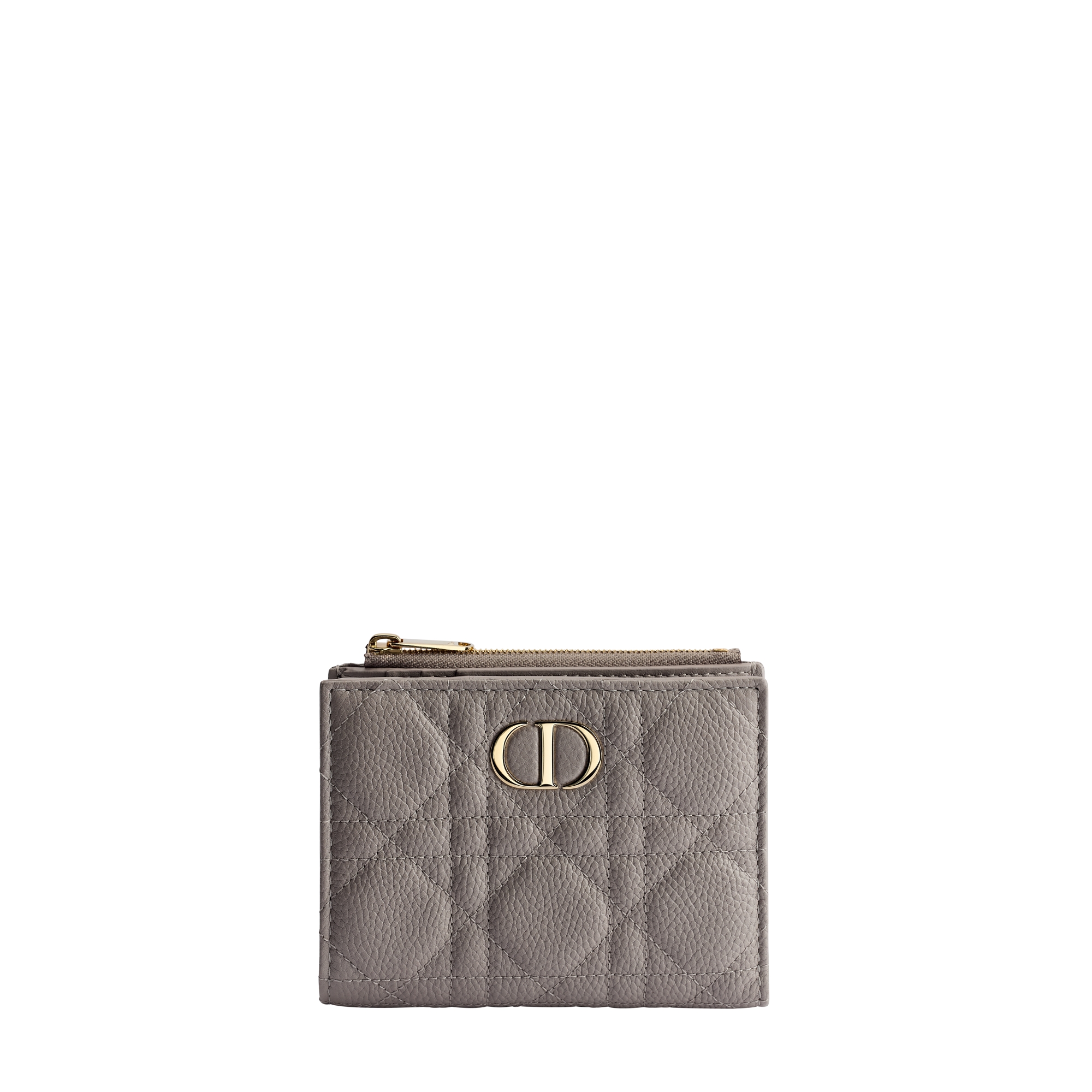 The Dior Caro Glycine wallet is distinguished by its compact and practical design. Crafted in gris Trianon gray grained calfskin with Cannage stitching, it is enhanced by the CD signature in pale gold-finish metal on the front. Accommodating all the essentials, the refined accessory will fit anywhere and can be paired with other Dior Caro creations.