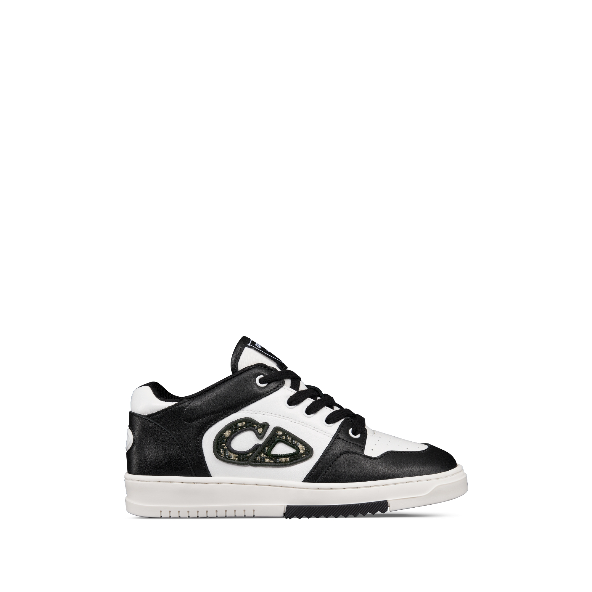 This season, the essential B57 Dribble low-top sneaker from the Dior Men's universe is offered in black and white. Crafted in smooth calfskin, the style is adorned with a beige and black Dior Oblique CD signature in jacquard on the side. It is enhanced by various hallmark details on the tongue, sole and rear, while perforated detailing and topstitching accentuate its athletic appeal. Completed by a two-tone rubber sole, the sneaker will elevate any favorite outfit from the collection. A smaller version is also available for babies.