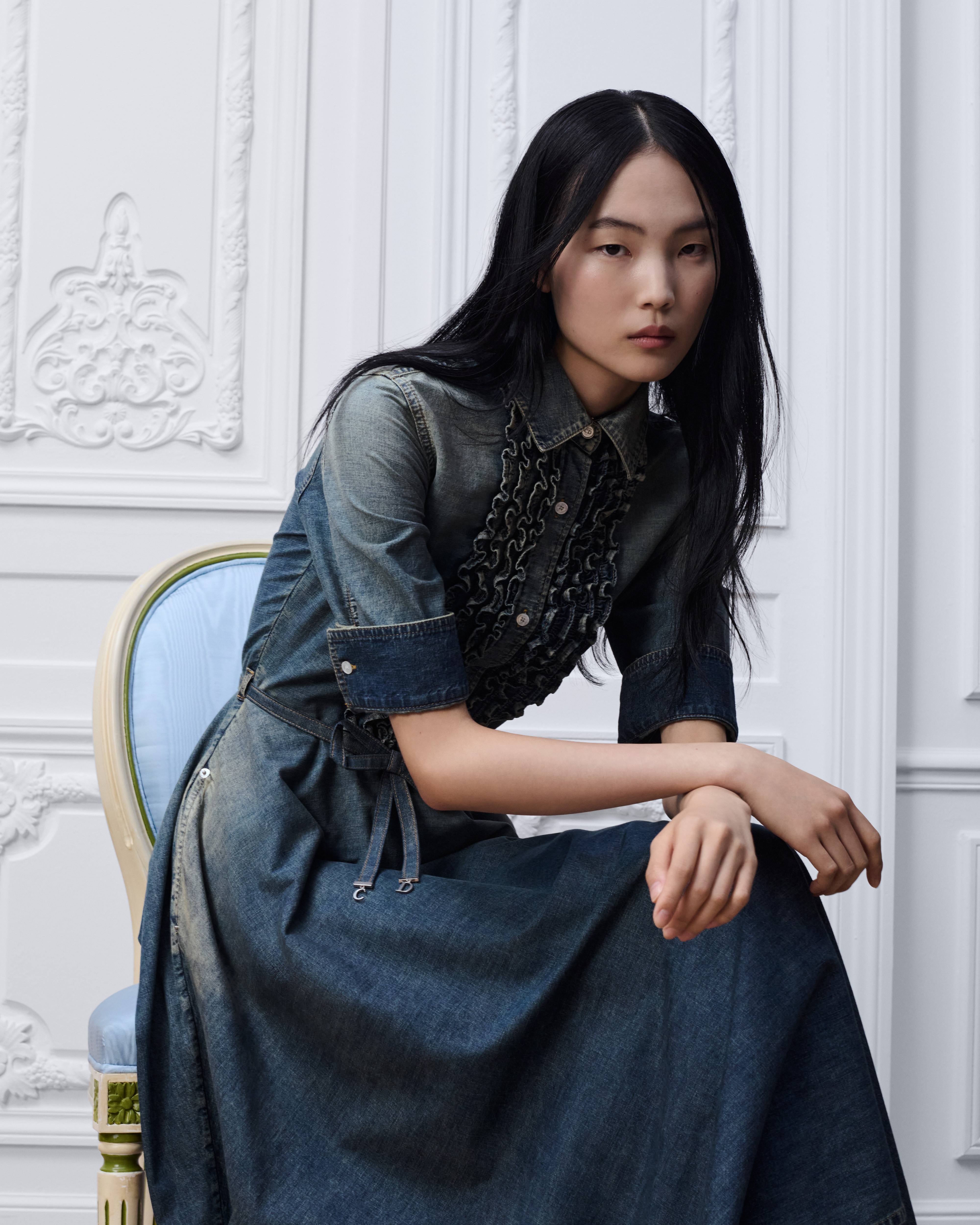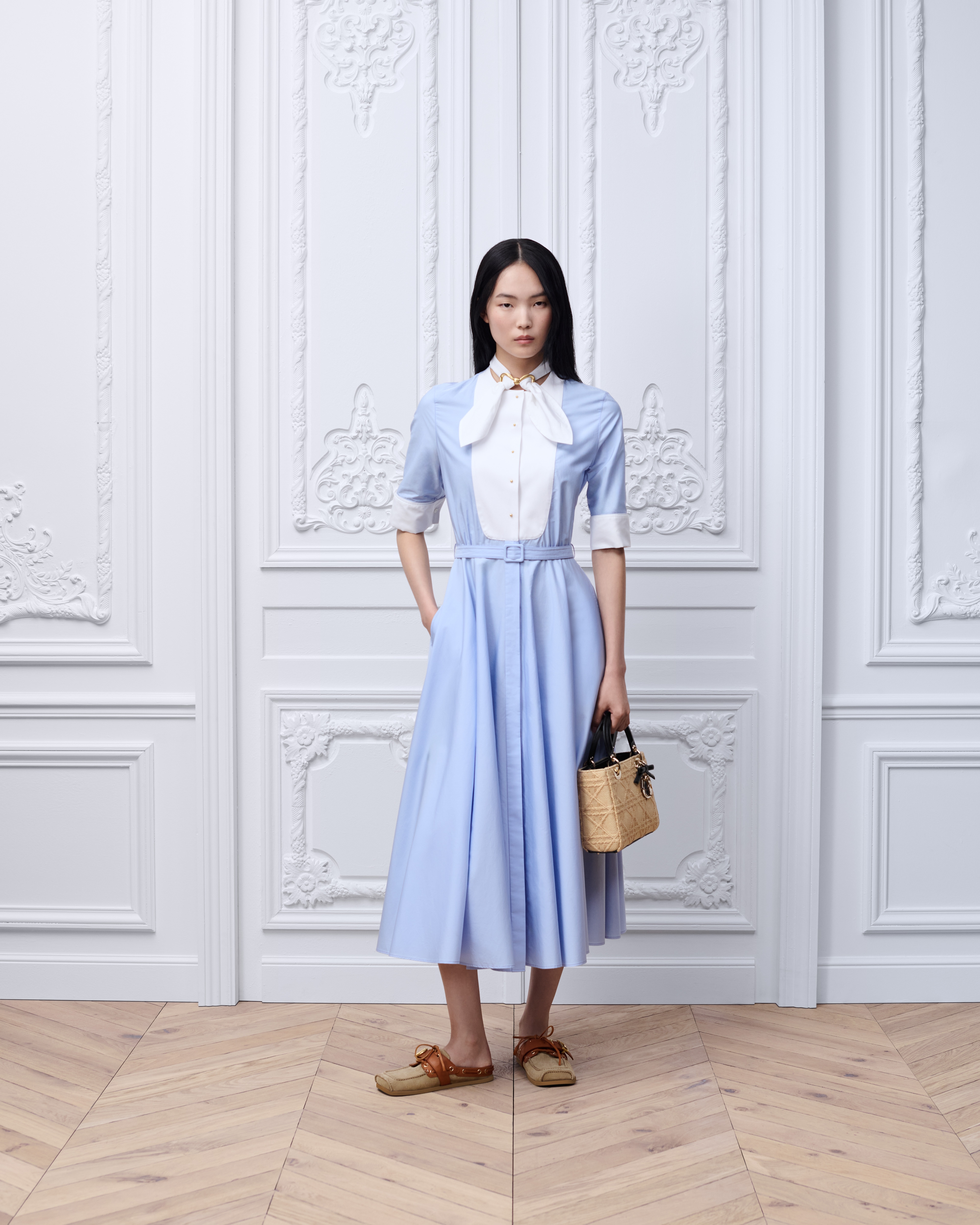 Tonal bow belt with silver-finish metal C and D initials