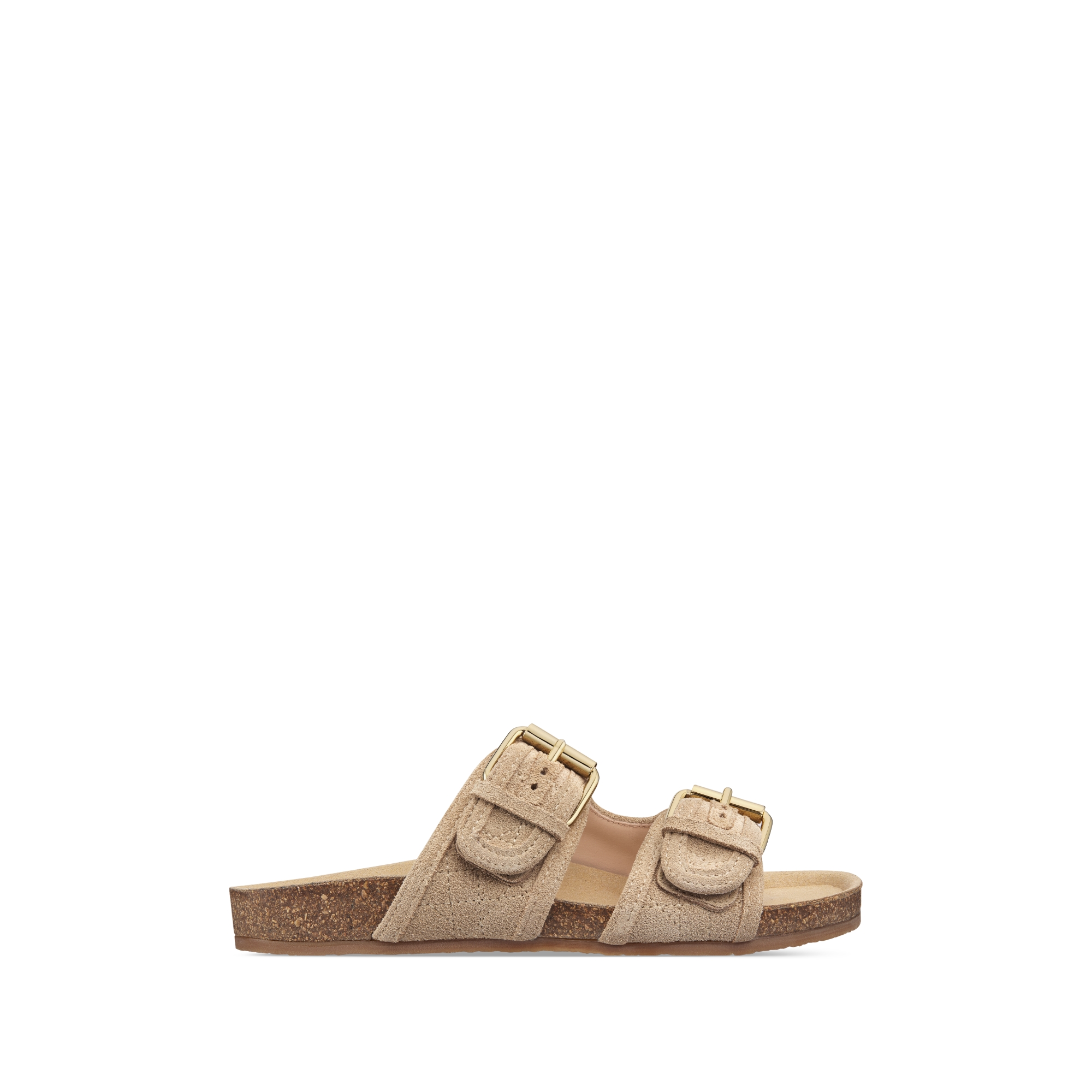 The slide offers a dynamic yet laid-back style. Crafted in beige suede, it features two adjustable straps with gold-finish metal buckles. Complemented by a thick, comfortable sole, the slide will provide a chic look for both girls and boys.
