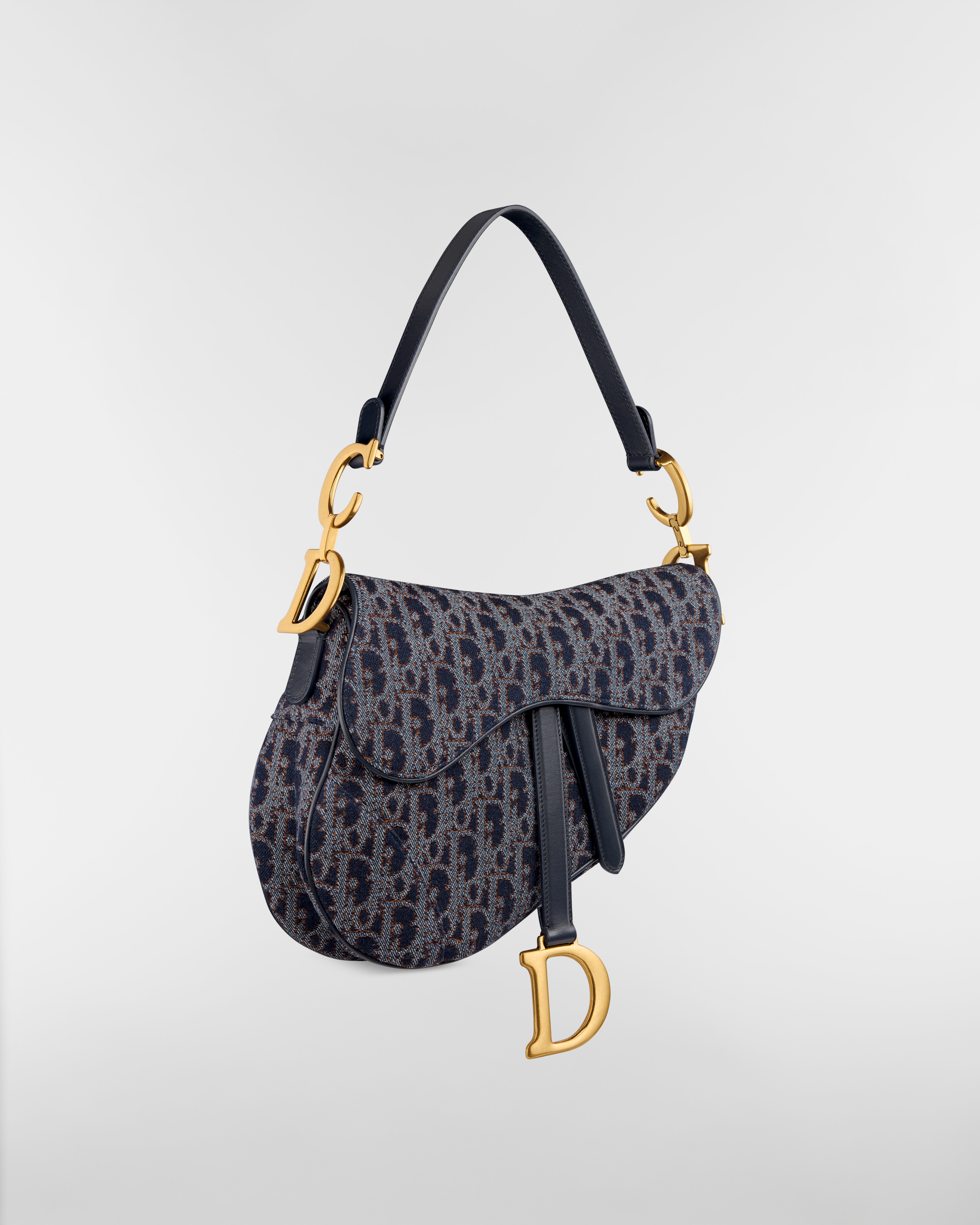 Blue and Tobacco Brown Dior Oblique Denim with Contrasting Topstitching