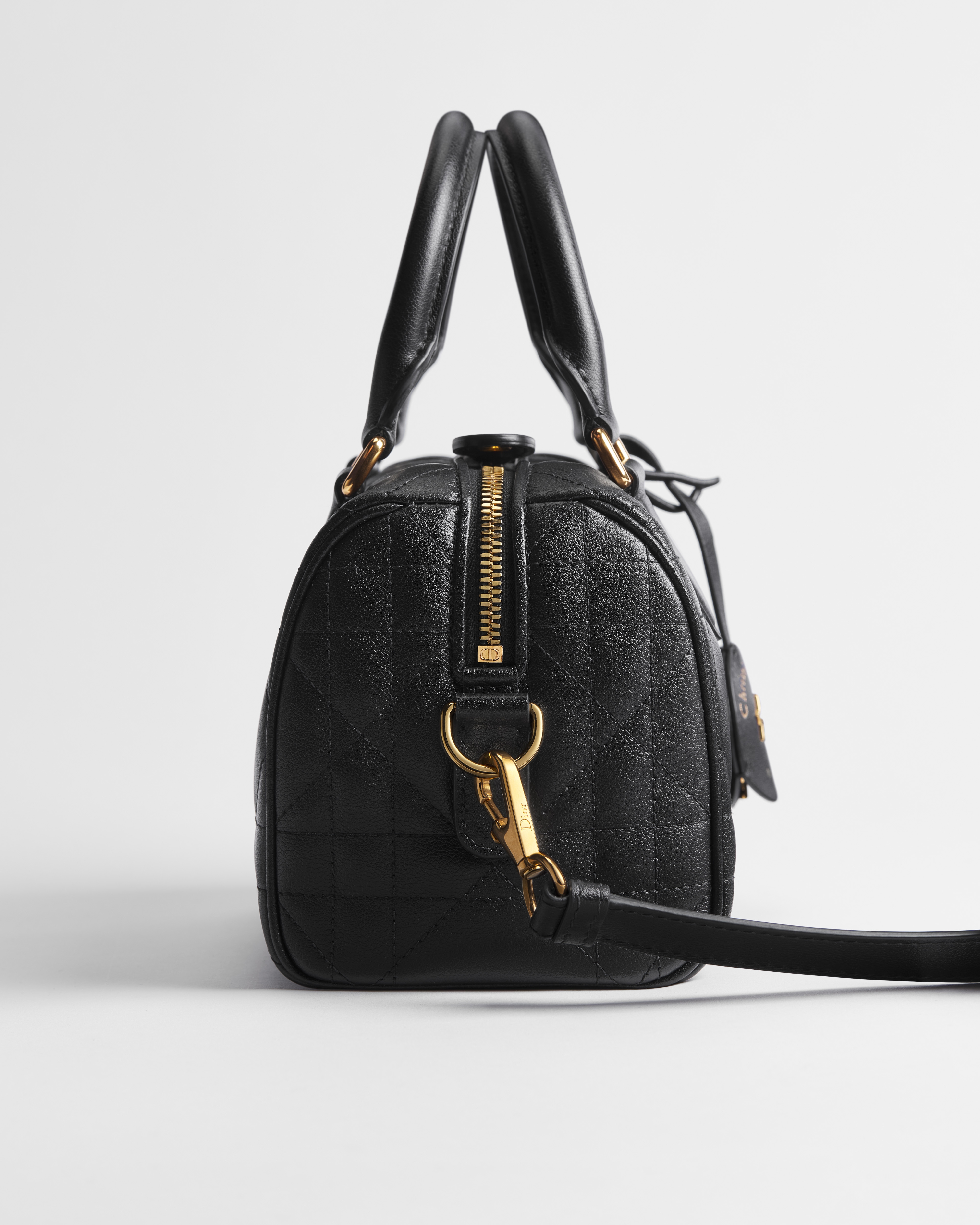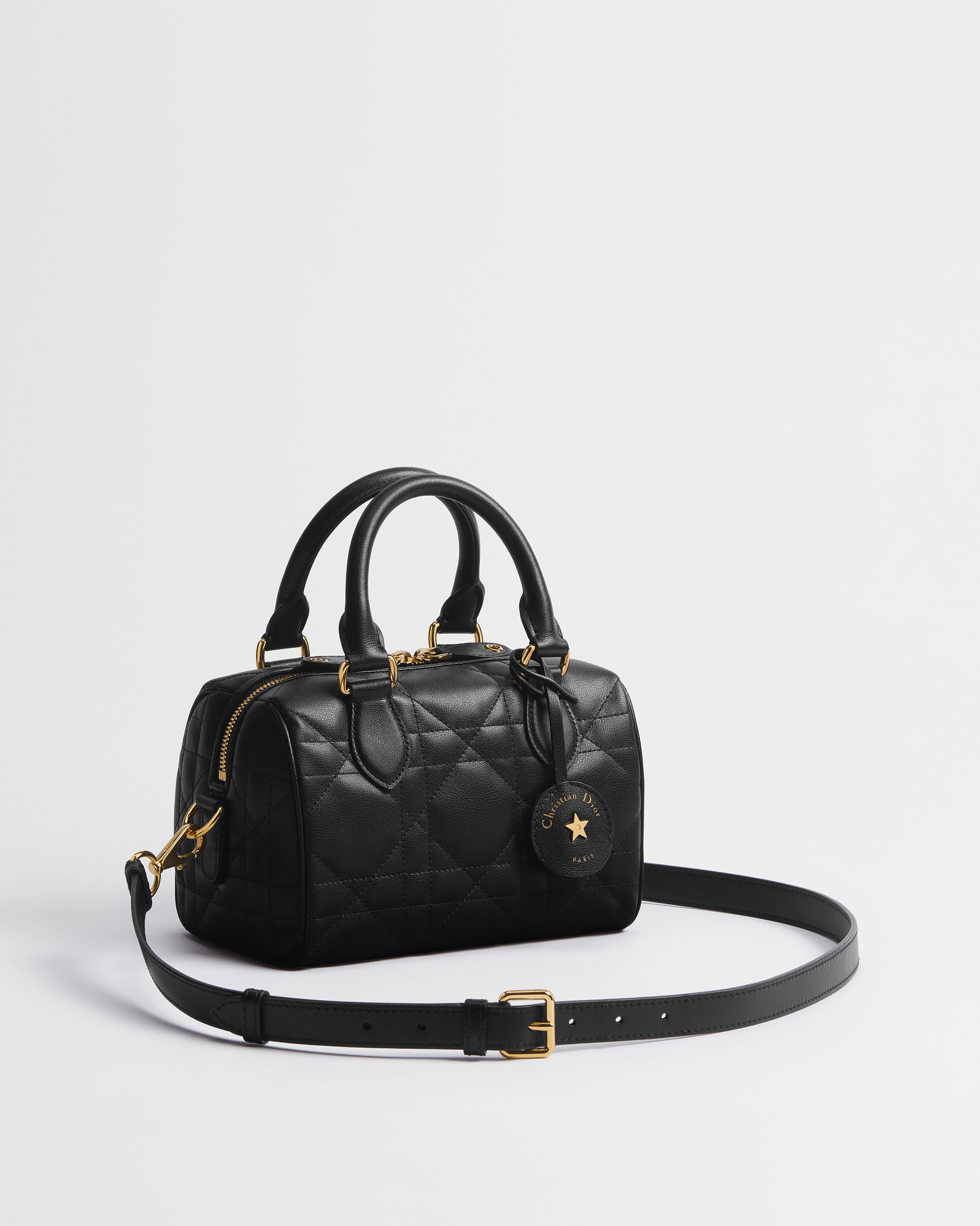 The Soft Dior Groove 20 bag is an elegant and modern design with a supple, practical construction. Demonstrating the House's savoir-faire, the black calfskin style is elevated by a quilted Macrocannage motif and distinguished by a leather key holder with the Christian Dior Paris signature and a gold-finish star. The attached key opens the zipper padlock to reveal a spacious compartment with a slip pocket and a zip pocket for all the essentials. Featuring leather top handles and an adjustable, removable strap, the bag can be carried by hand, worn over the shoulder or crossbody as an ideal daily companion.
