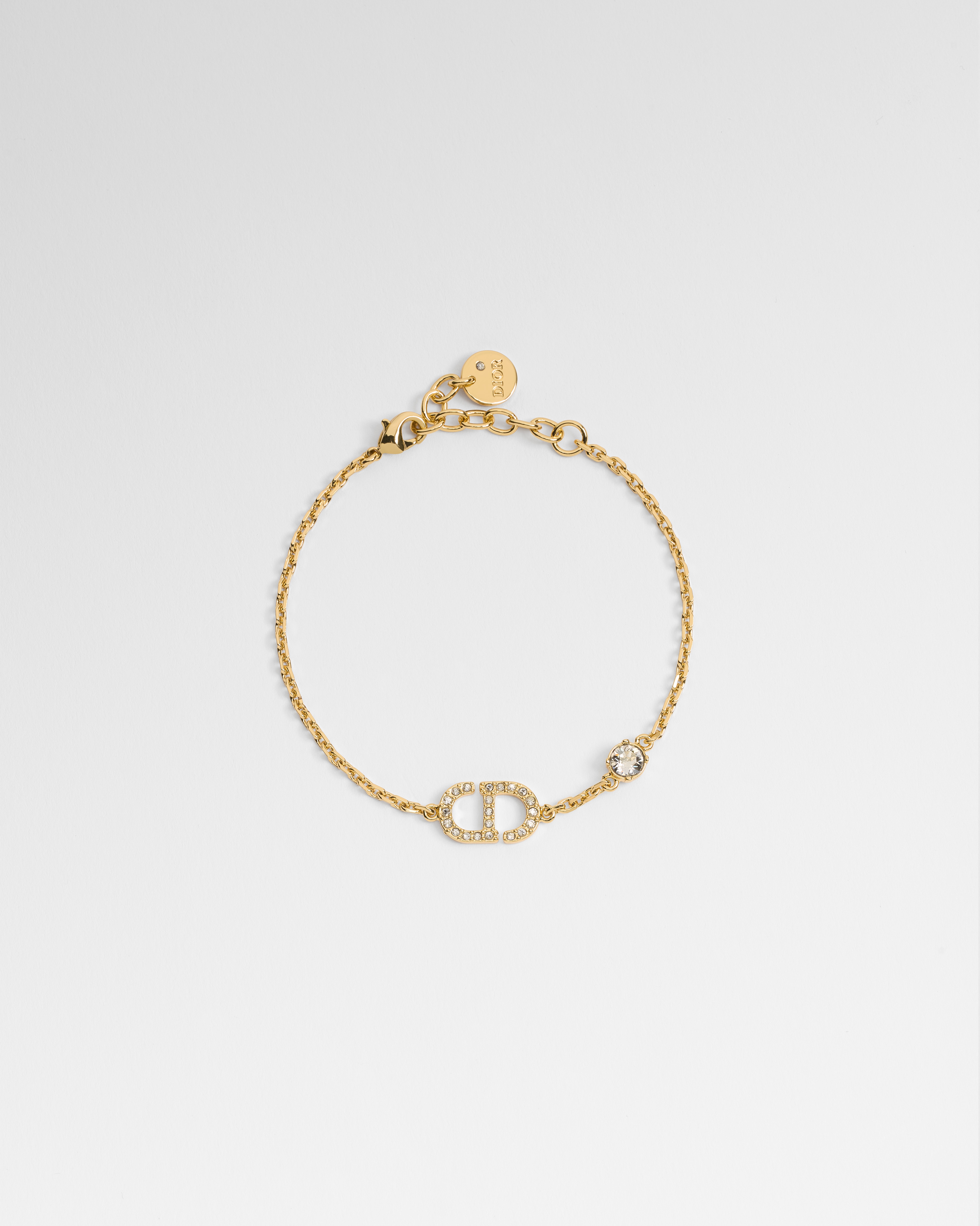 The Petit CD necklace has an elegant and streamlined aesthetic. The gold-finish metal design is comprised of a thin chain embellished with the CD signature pavé-set with silver-tone crystals and a delicate suspended silver-tone crystal. The modern and refined necklace can be worn with other Petit CD creations.