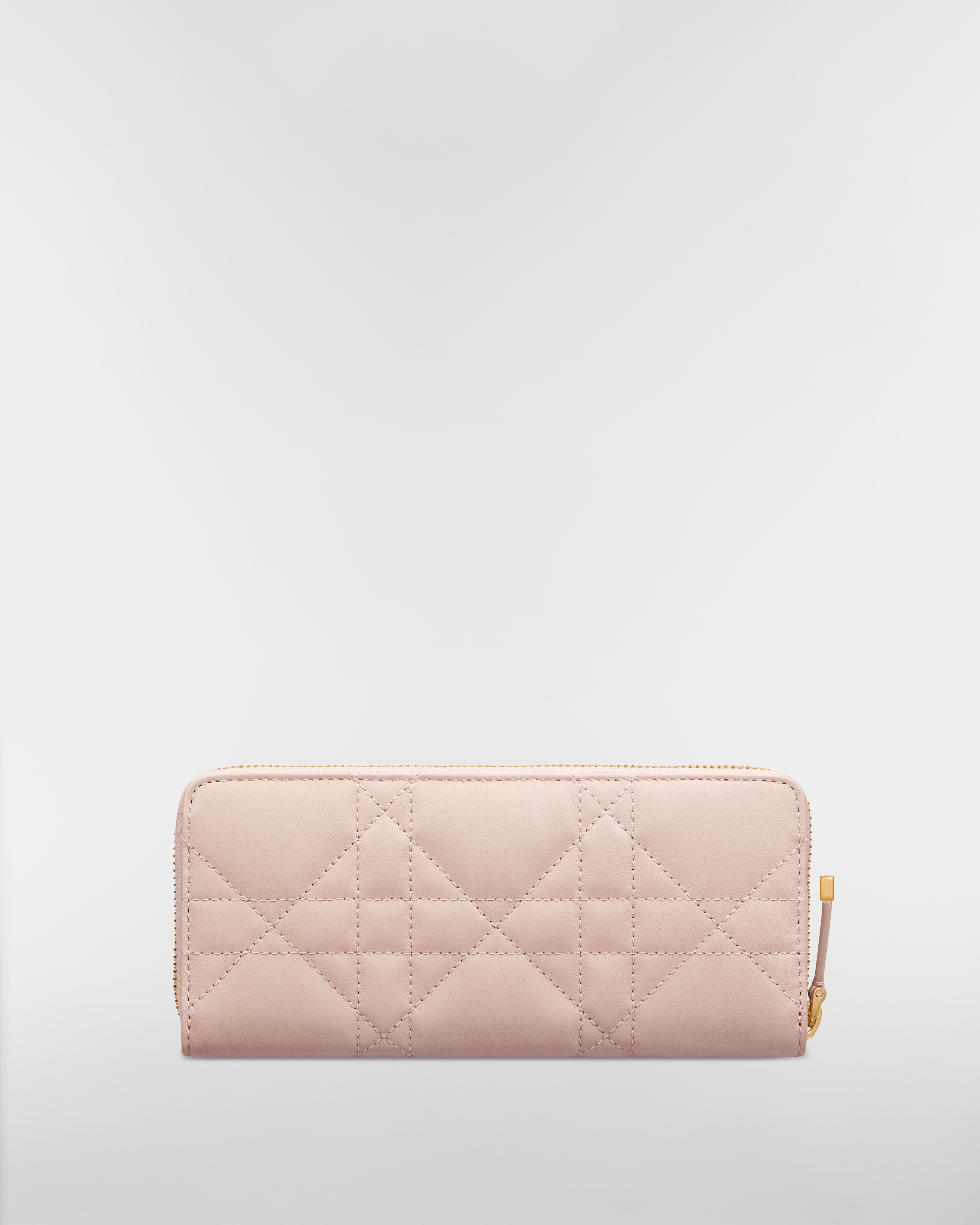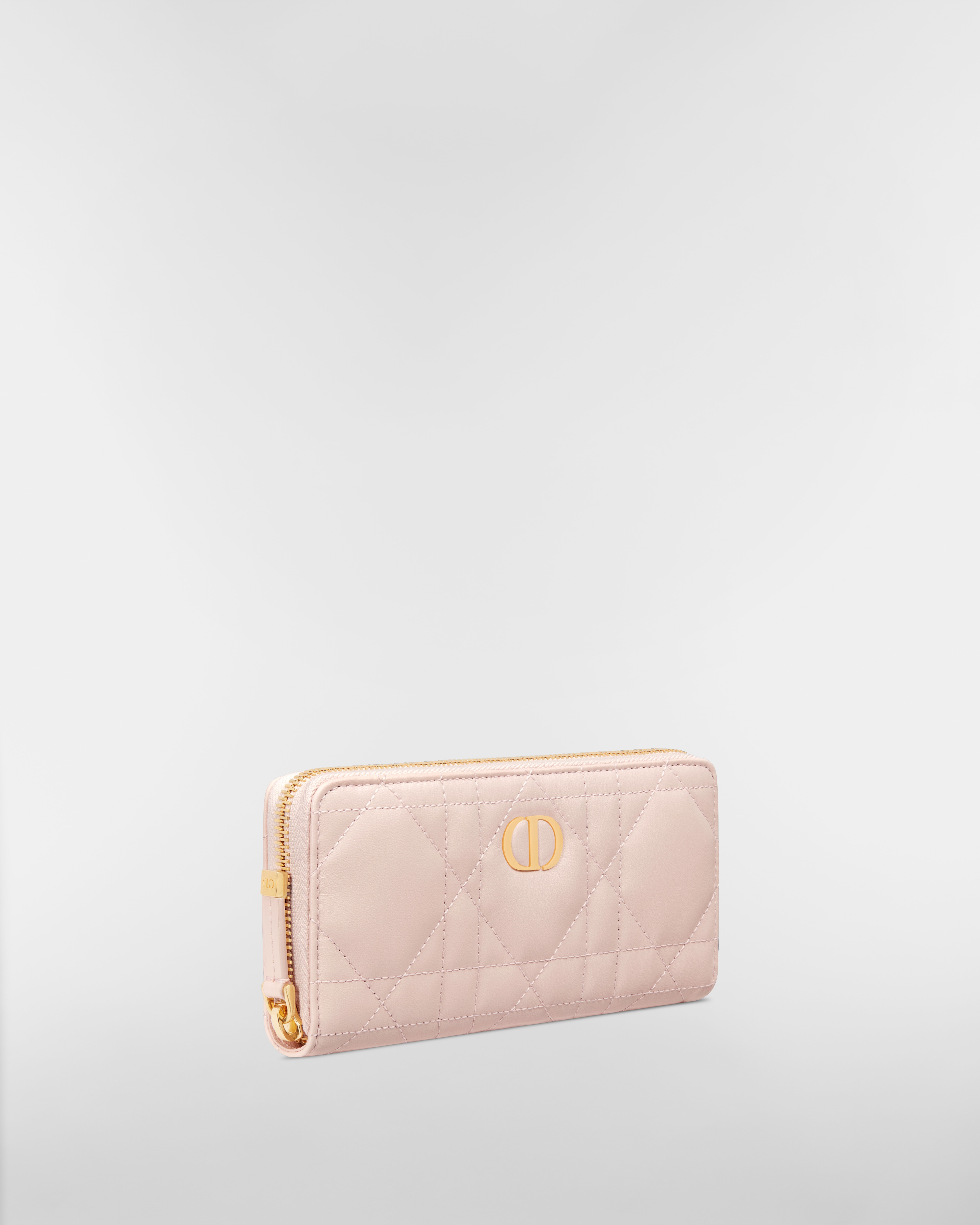 The Miss Caro Voyageur slim wallet features an elegant and practical design. Crafted in powder pink lambskin, it is enhanced by a Macrocannage quilted effect and accented by an antique gold-finish metal CD signature on the front. The chic and spacious companion can accommodate daily essentials. It can be coordinated with other accessories from the same line and will fit into any bag.