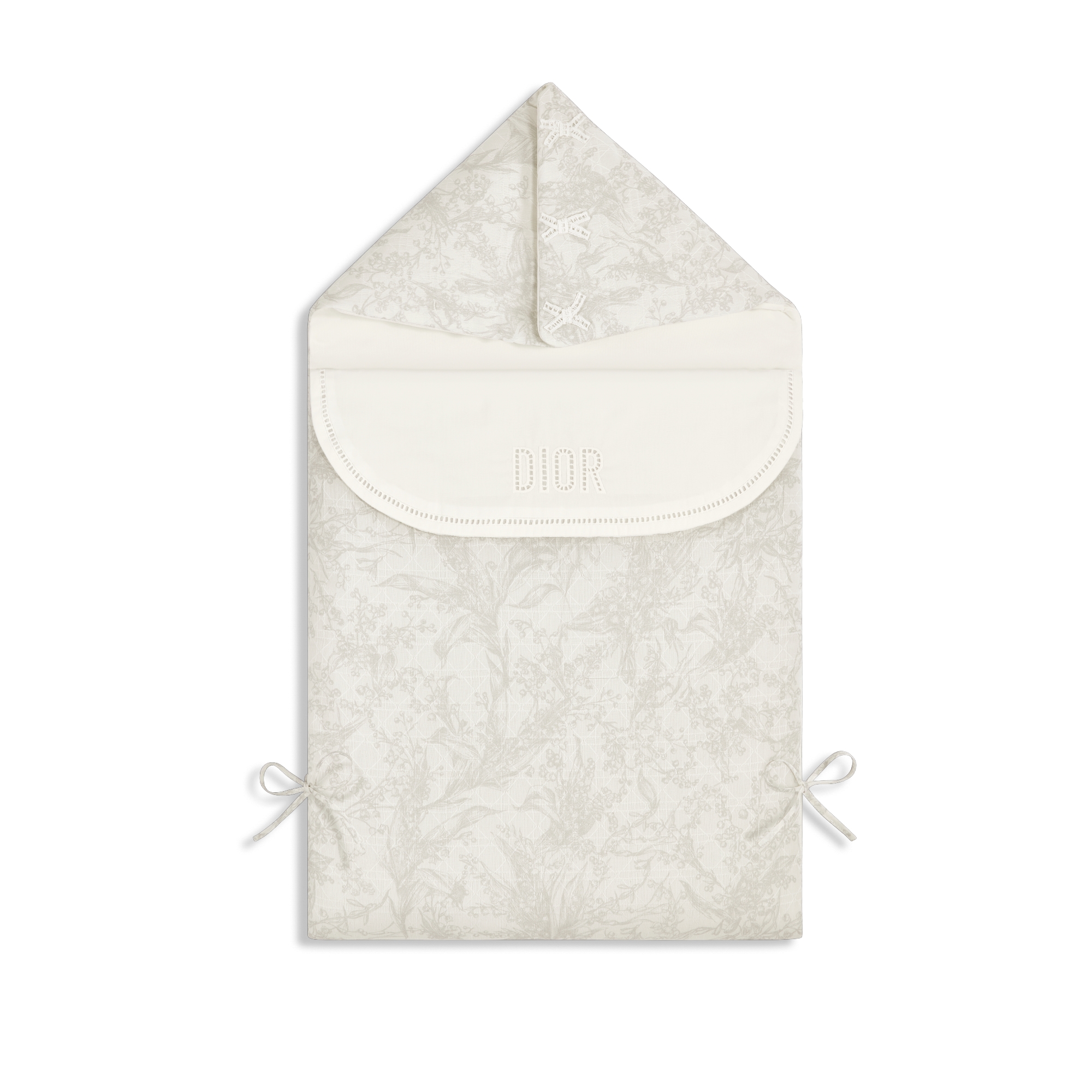• Sleeping Bag Ivory Cotton Voile with Cannage Jacquard and Light Gray Lily of the Valley Print E01