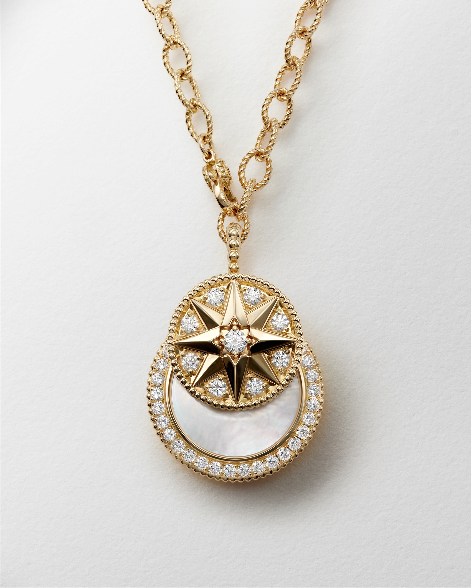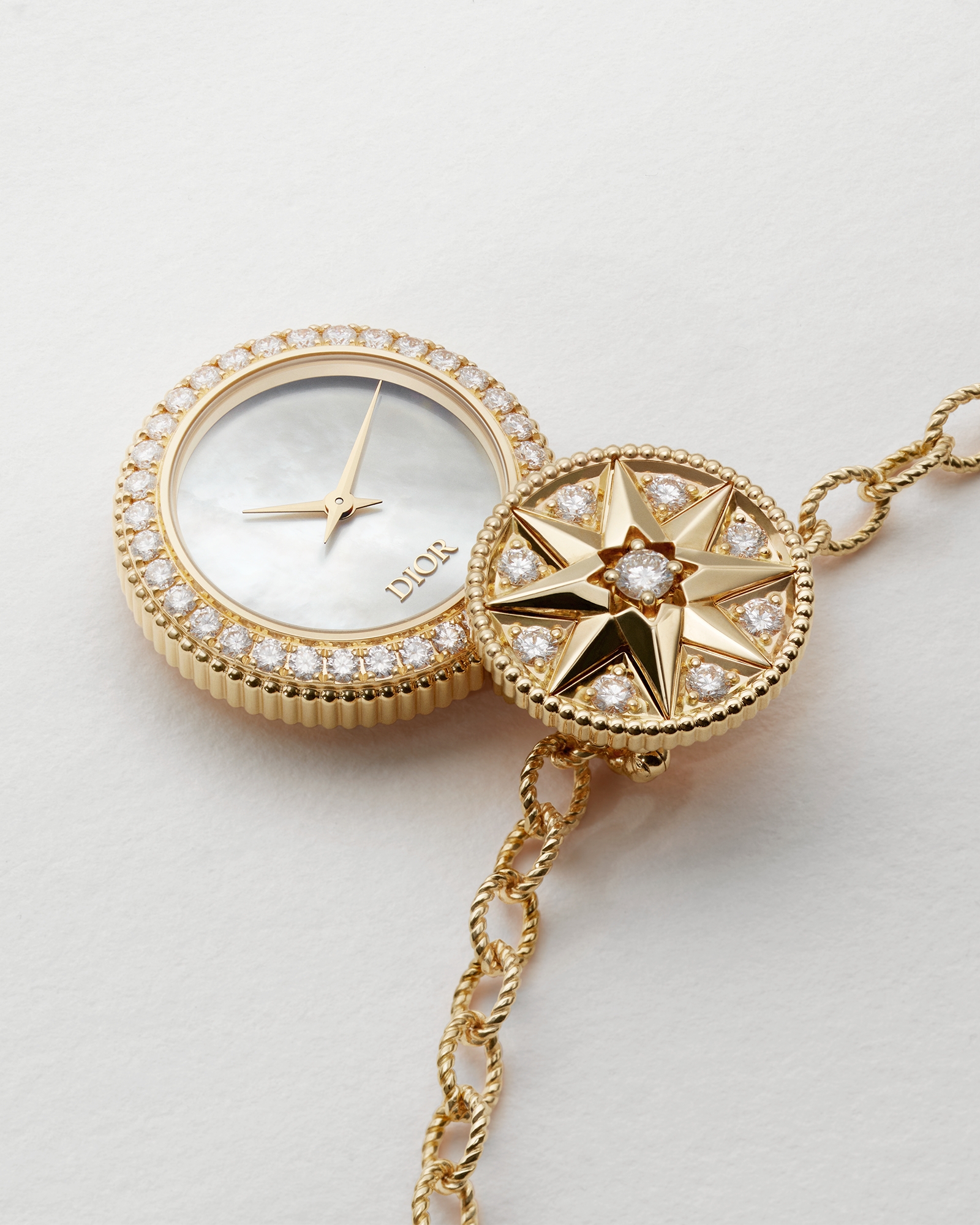 Ø 25 MM, Yellow, Pink and White Gold with Mother-of-Pearl, Diamonds and Ornamental Stones
