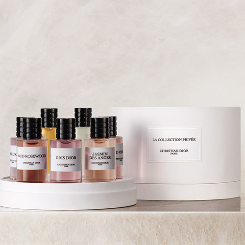 La Collection Privée invites you to discover its sets of six and five Esprits de Parfum. Each fragrance unveils its unique tones forming an olfactory palette rich in contrasts and nuances, to be worn according to your desires.