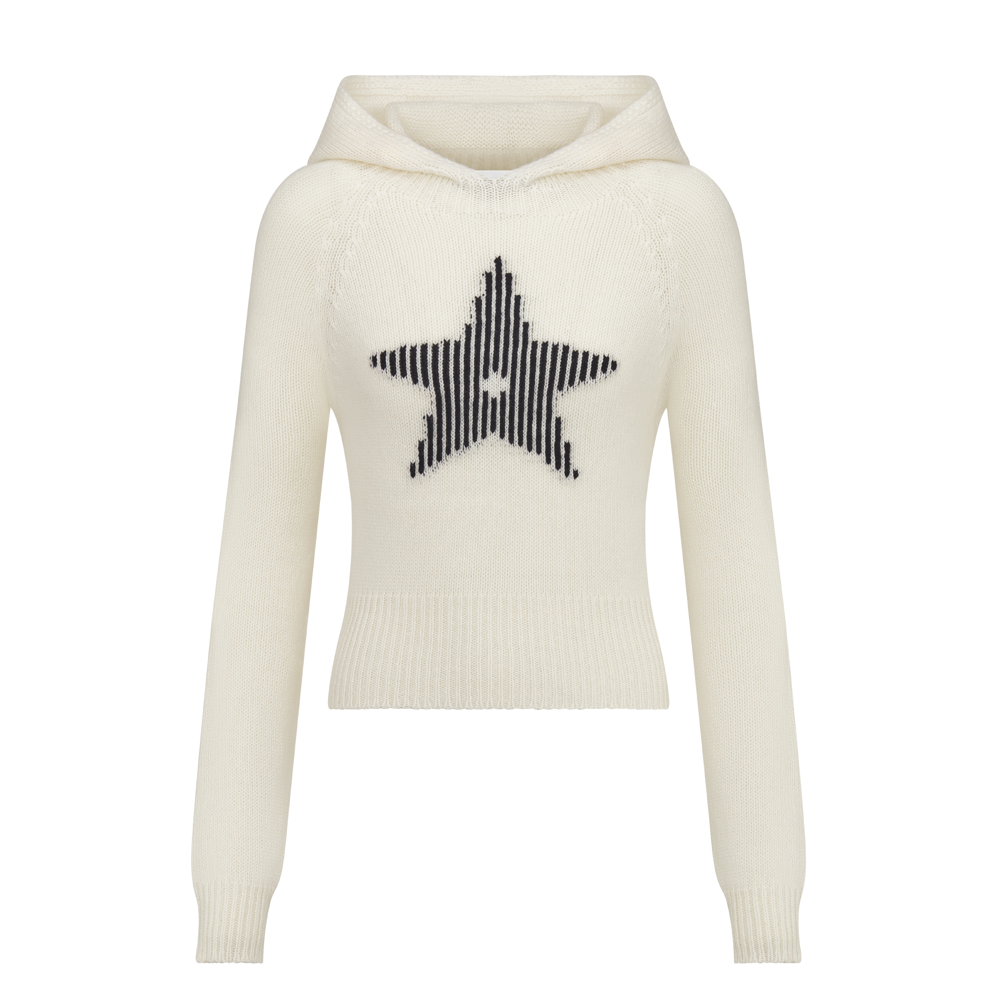 White Wool and Cashmere Knit with Navy Blue Dior Star Motif