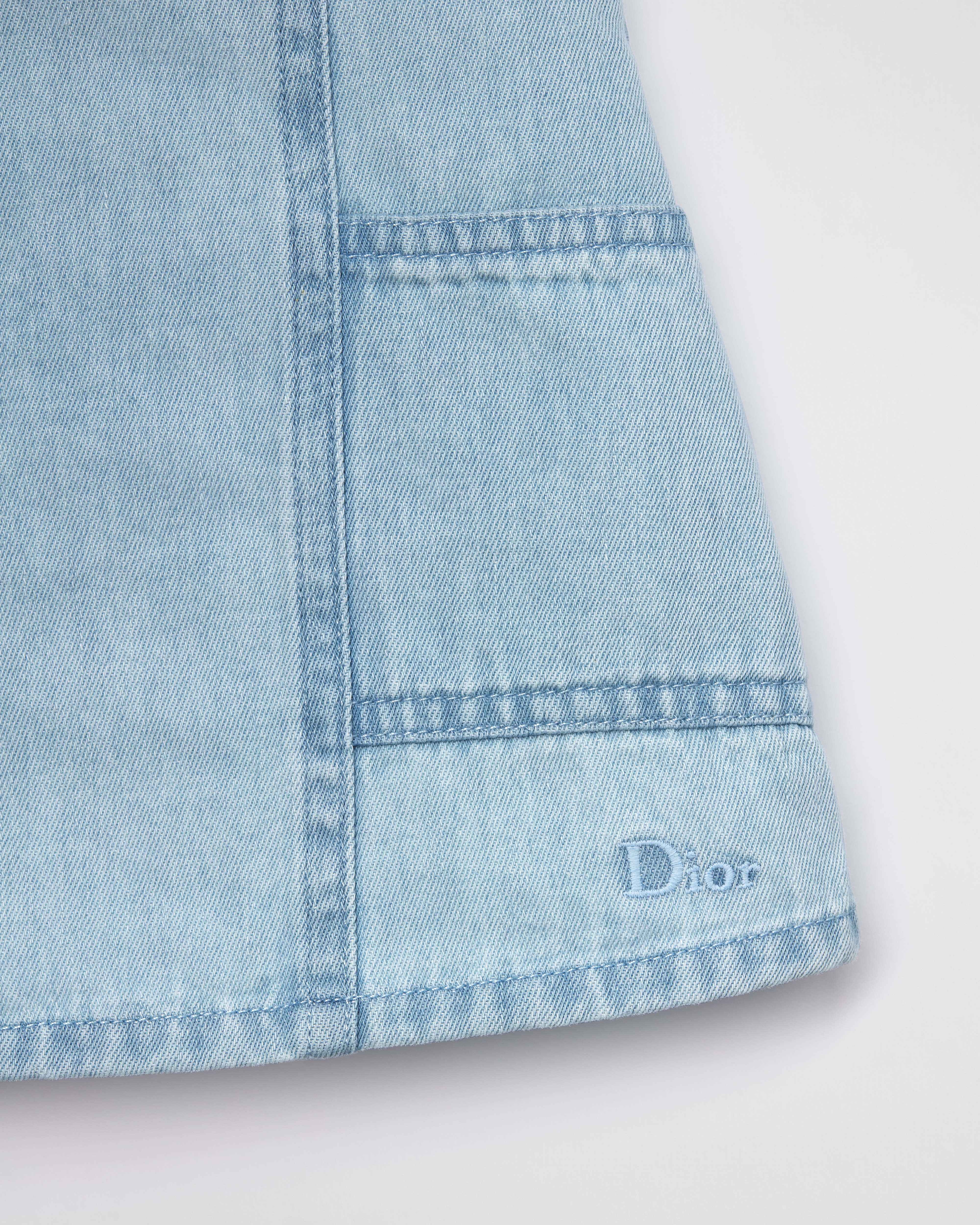 Tonal Dior embroidery at the left hem