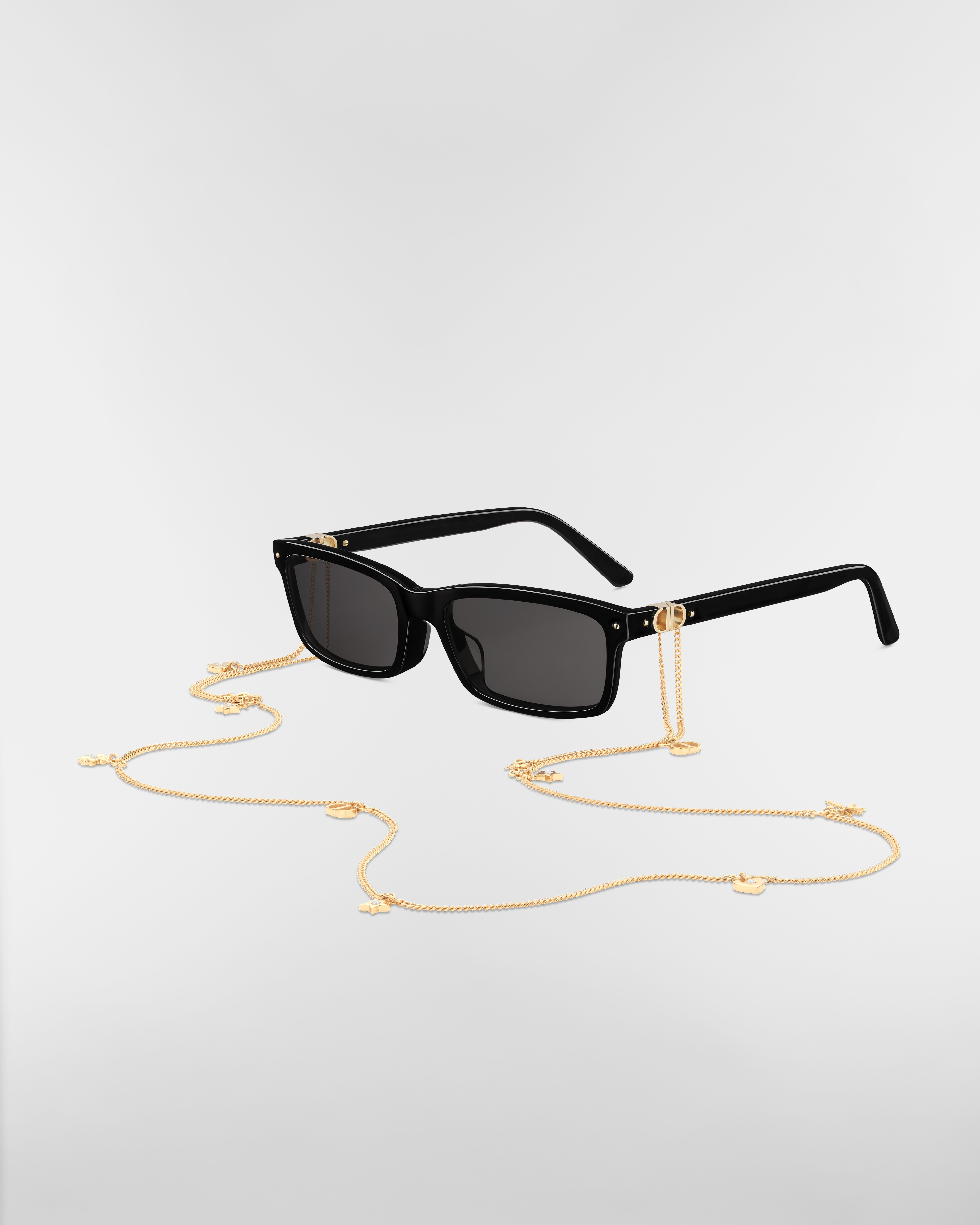 Black Rectangular Sunglasses with Dior Lucky Gold-Finish Metal Chain