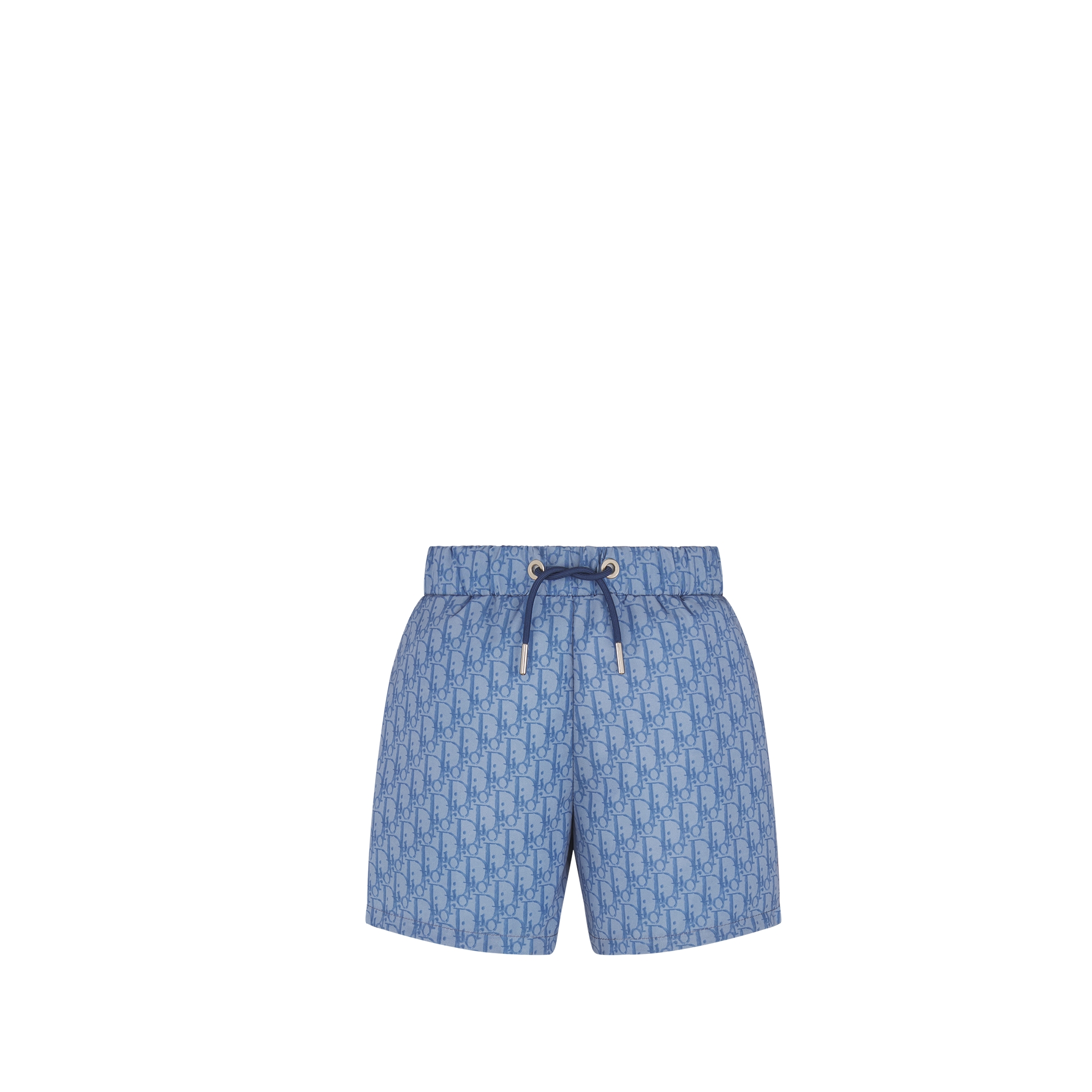 The swim shorts pay homage to House heritage with the hallmark Dior Oblique motif. Crafted in anti-UV technical fabric with a light blue print, they feature slanted pockets and an elastic waistband with drawstrings for a perfect fit. The swim shorts can be worn with a T-shirt from the collection to complete a playful seaside look.