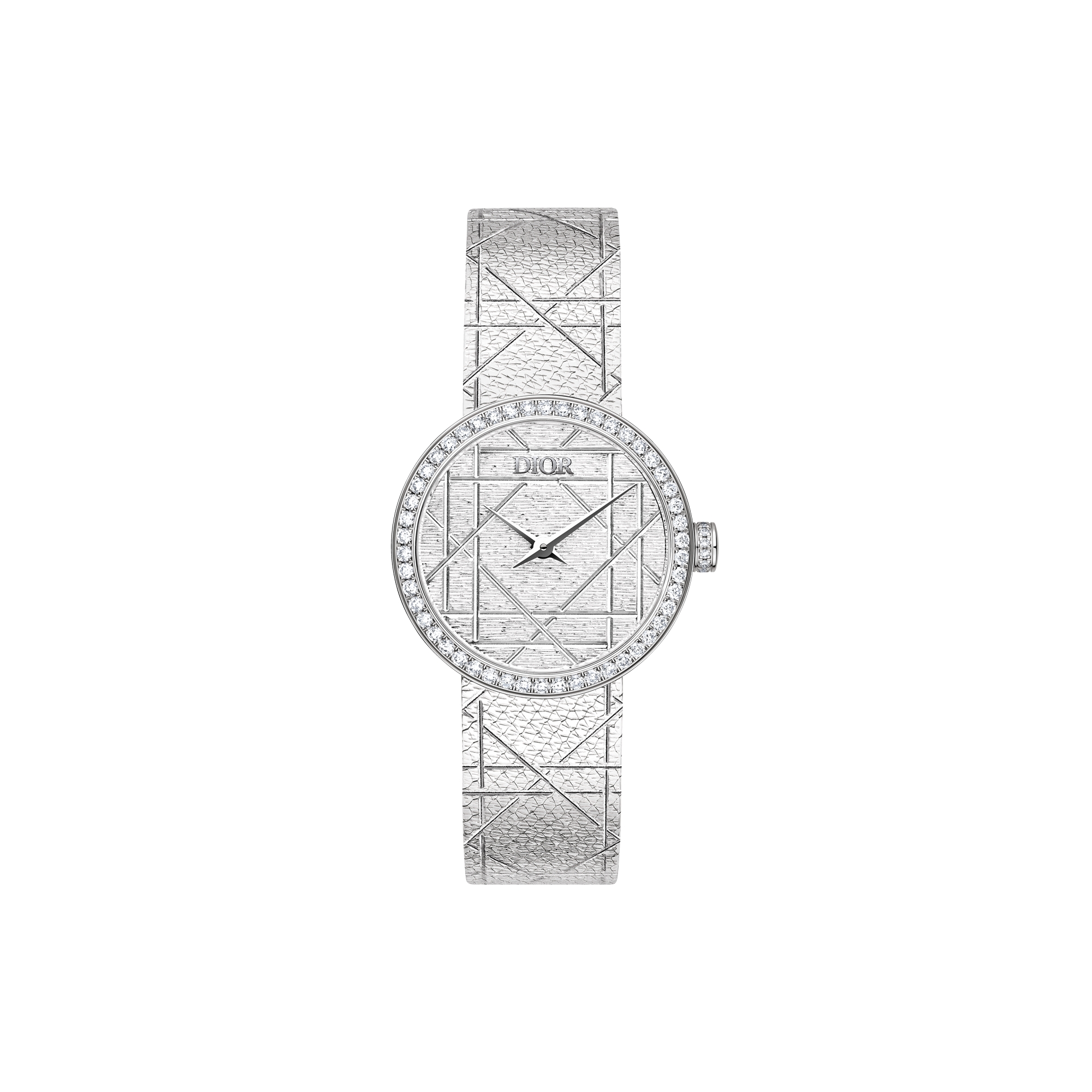 To celebrate 20 years of la D de Dior, created in 2003, the precious dial and bracelet of this House icon are adorned with geometric Cannage lines in honor of the motif so dear to Mr. Dior.