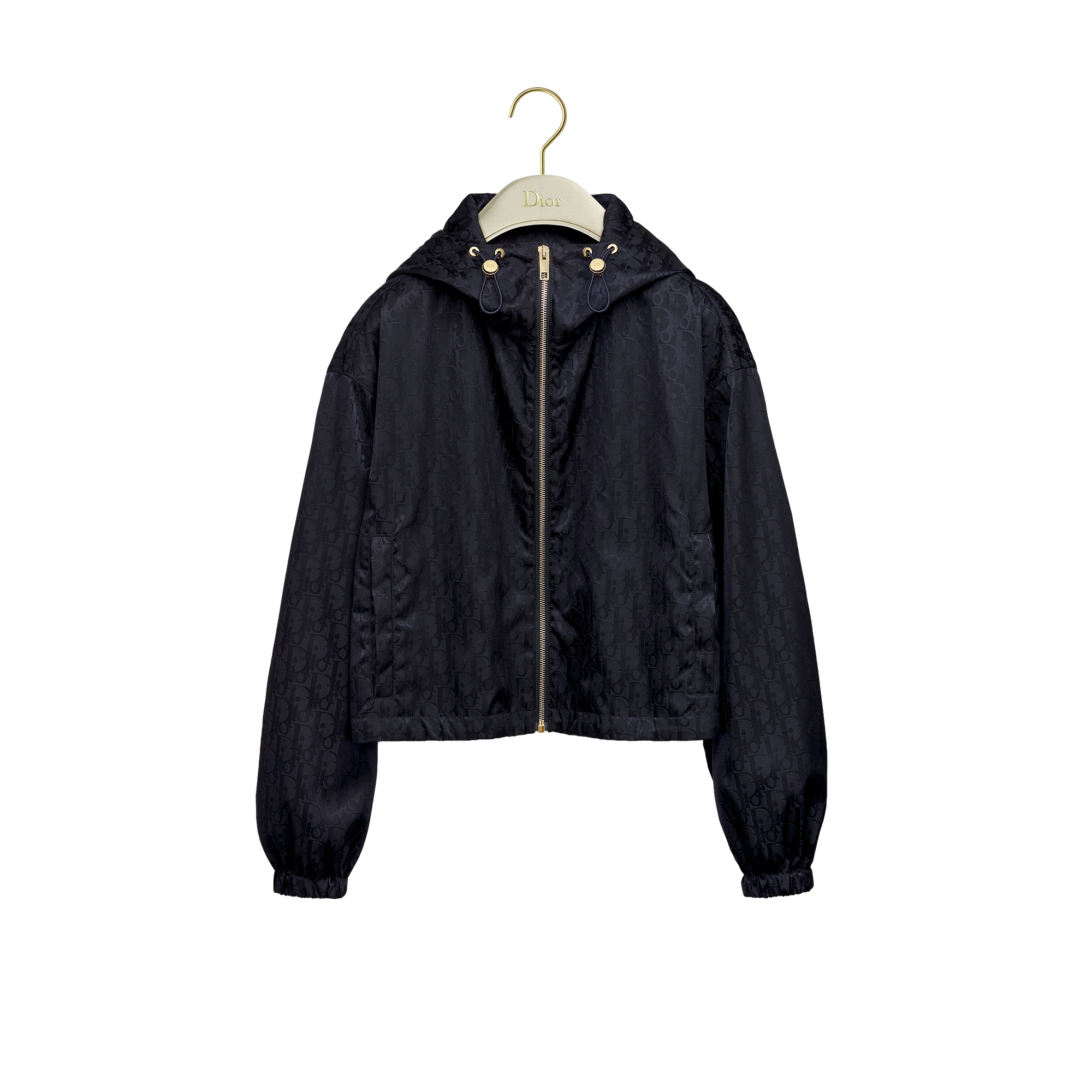 The jacket revisits iconic House codes with a sportswear spirit. Crafted in green technical taffeta with a tonal Dior Oblique motif, it is distinguished by a drawstring hood and front zip closure. Completed by ribbed finishes and side pockets, the jacket will elevate any casual attire with a hallmark look.