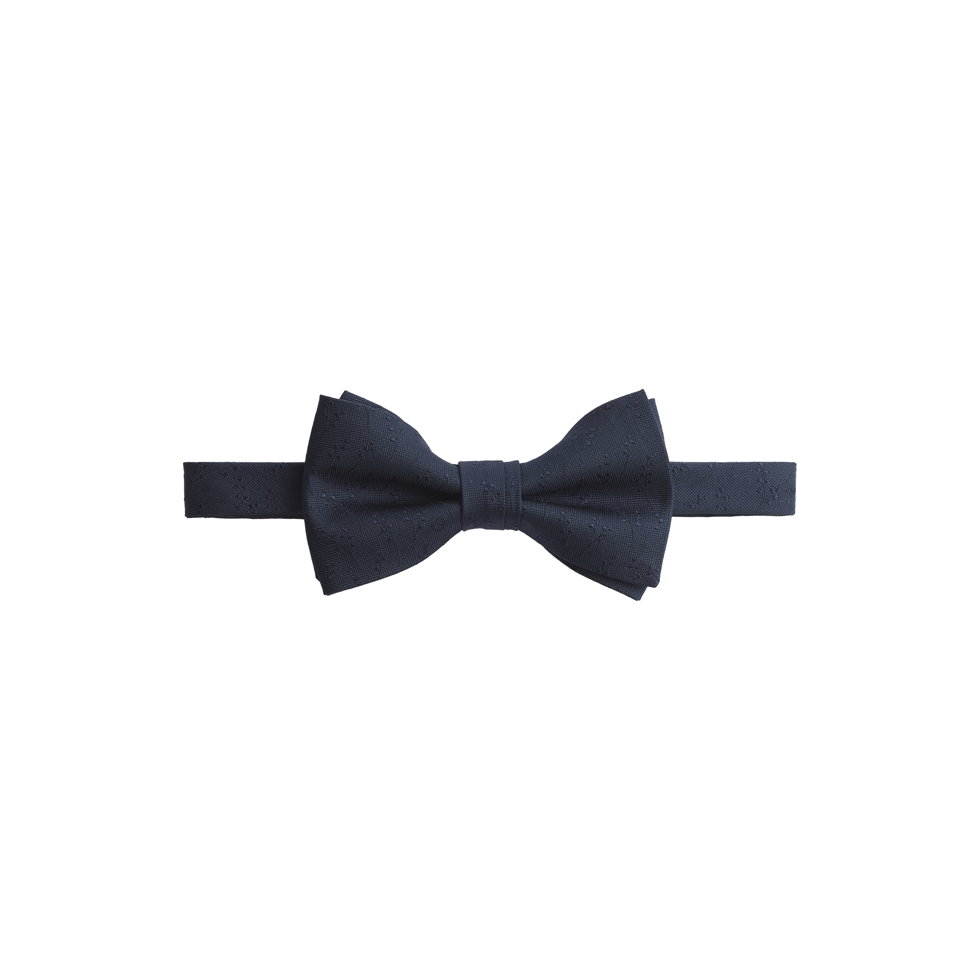 The tie showcases lilies of the valley in a tonal motif, paying homage to Mr. Dior's passion for flowers. Crafted in navy blue silk, the tie will elevate any suit with a refined touch and will pair perfectly with the matching pocket square for a sophisticated look.