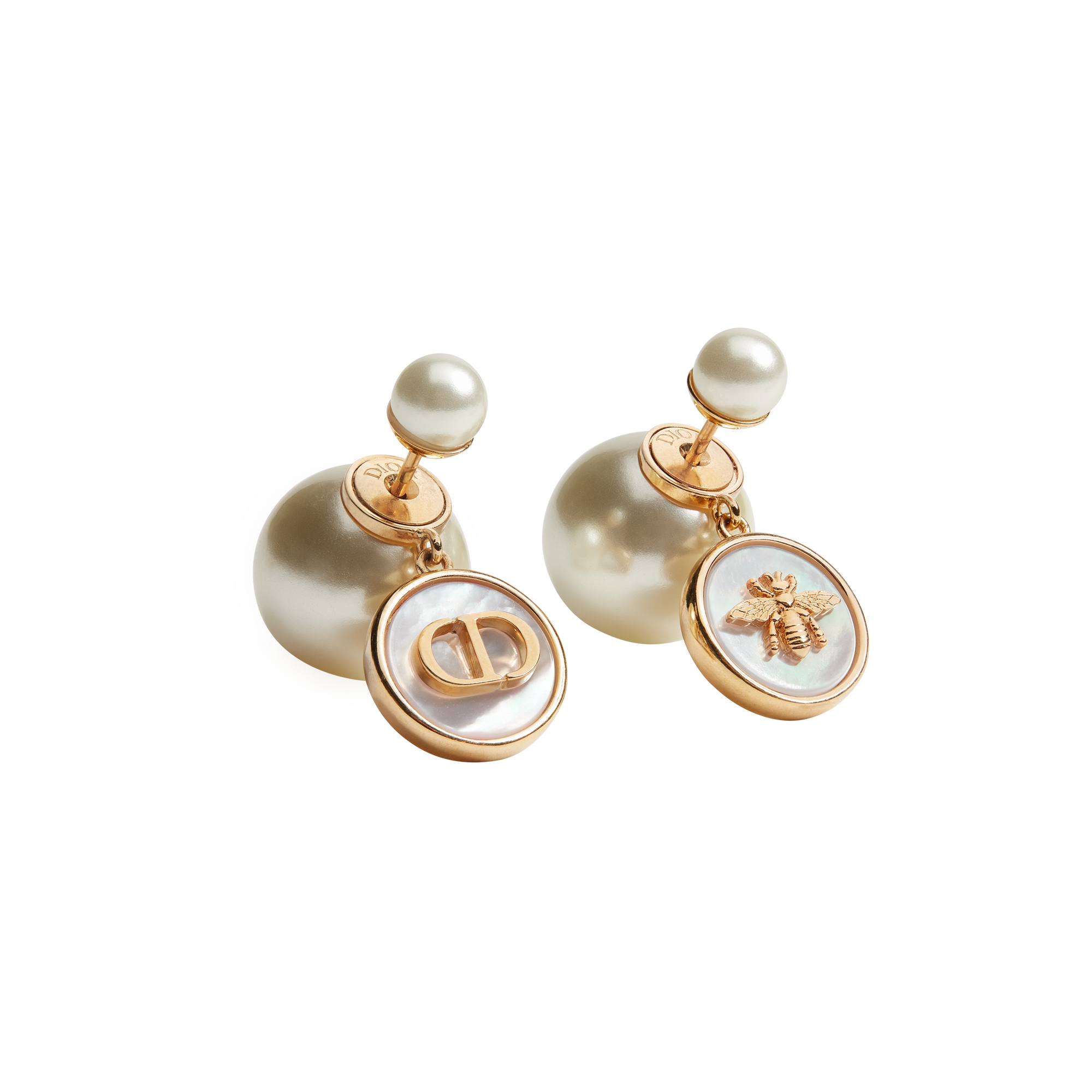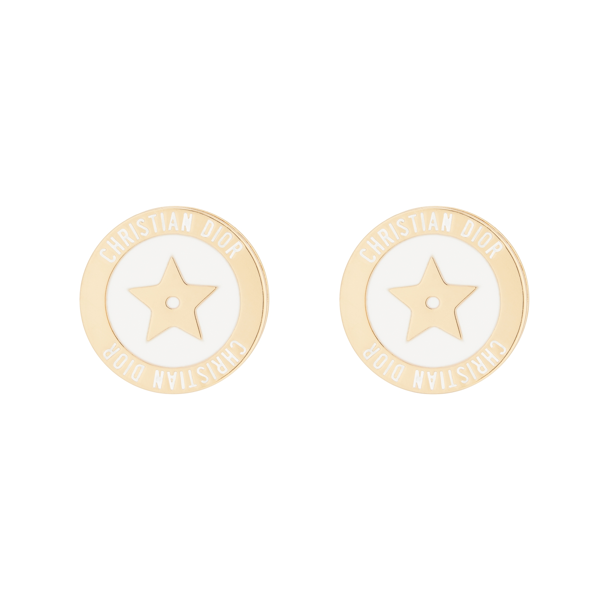 New for Cruise 2026, the Petit CD Circle stud earrings reflect Dior's codes of refinement and delicacy. Finely crafted in gold-finish metal, they showcase the CD signature elegantly encircled by white resin pearls. The sophisticated earrings can be worn with other Petit CD Circle creations.