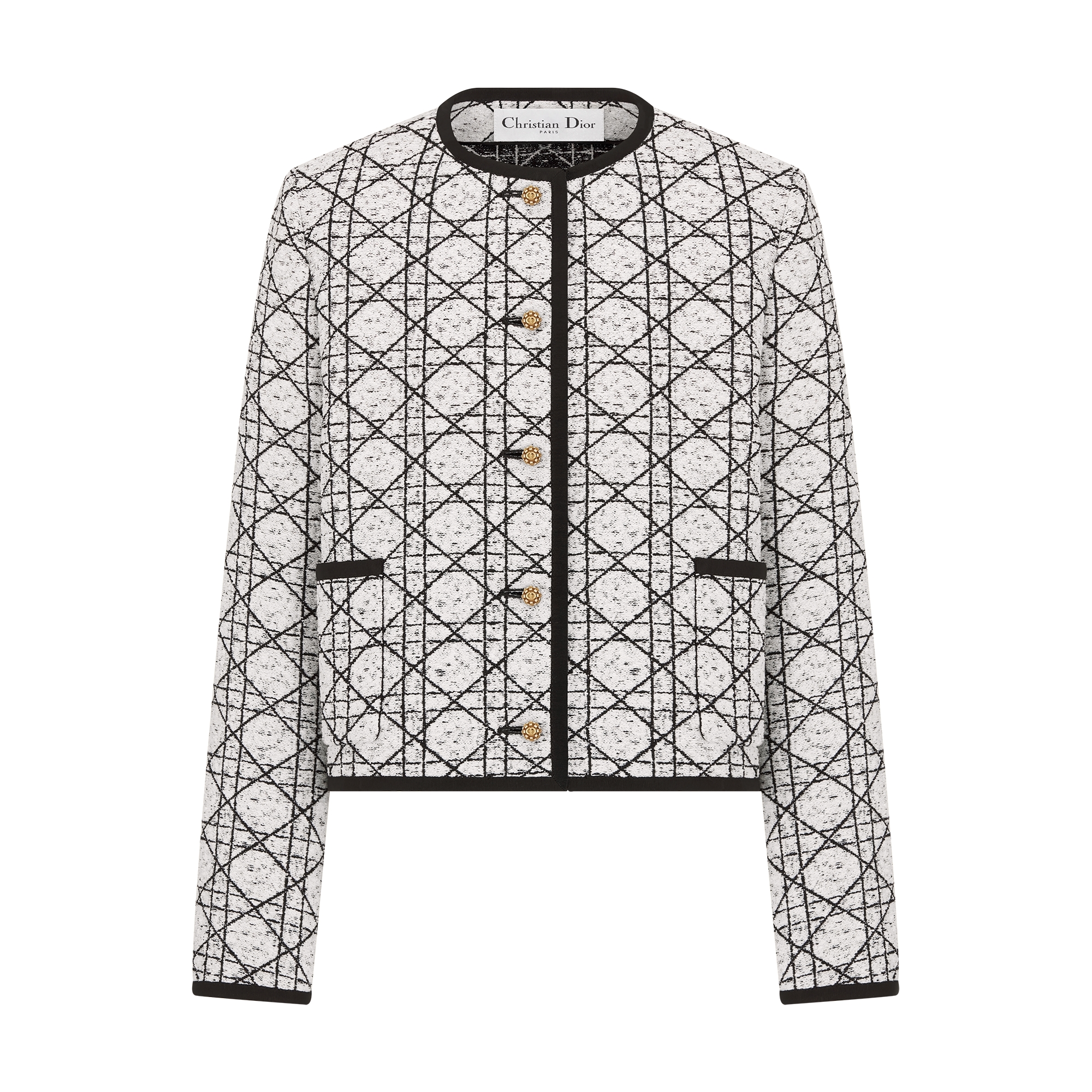 White Macrocannage Calfskin with Contrasting Black Topstitching