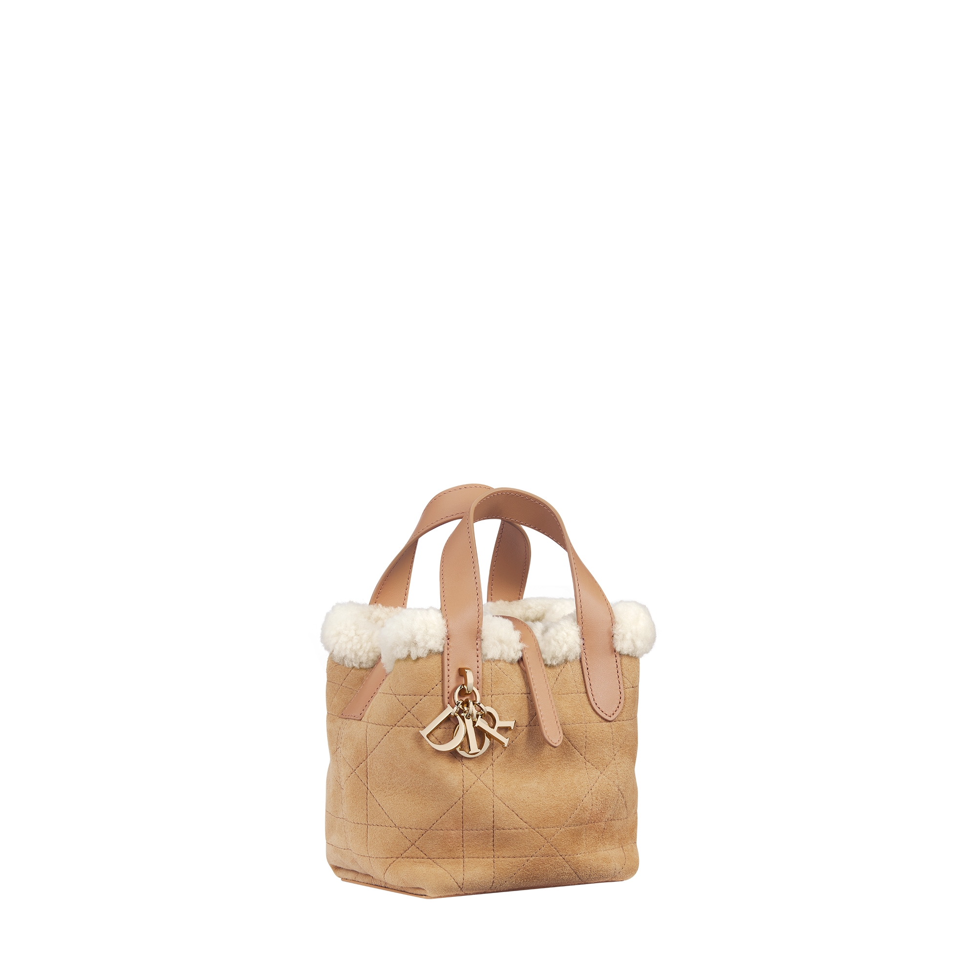 Beige Macrocannage Suede Calfskin and Ecru Merino Wool