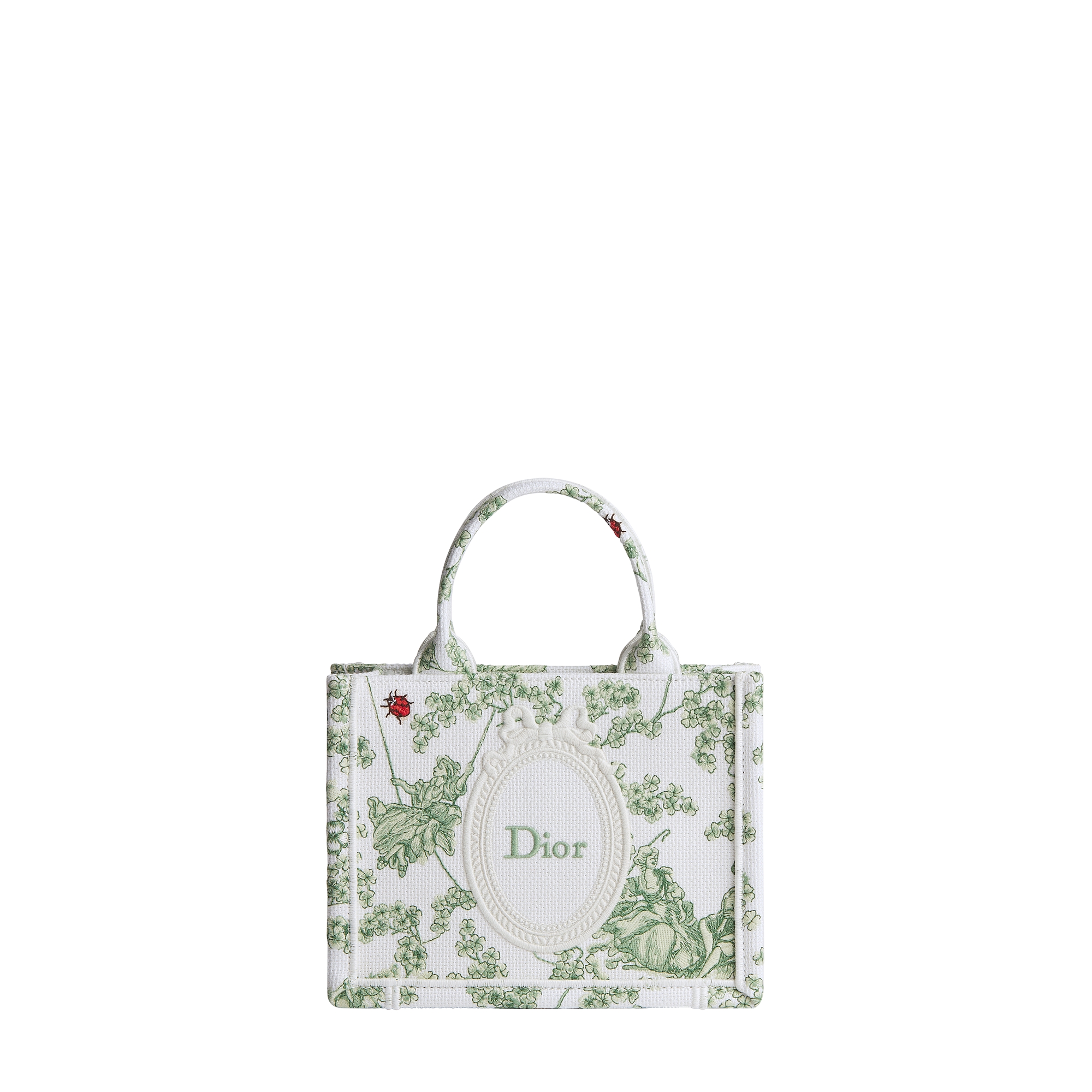Green and White Toile de Jouy Clover and Dior Médaillon Embroidery (21 x 16 x 6.5 cm)