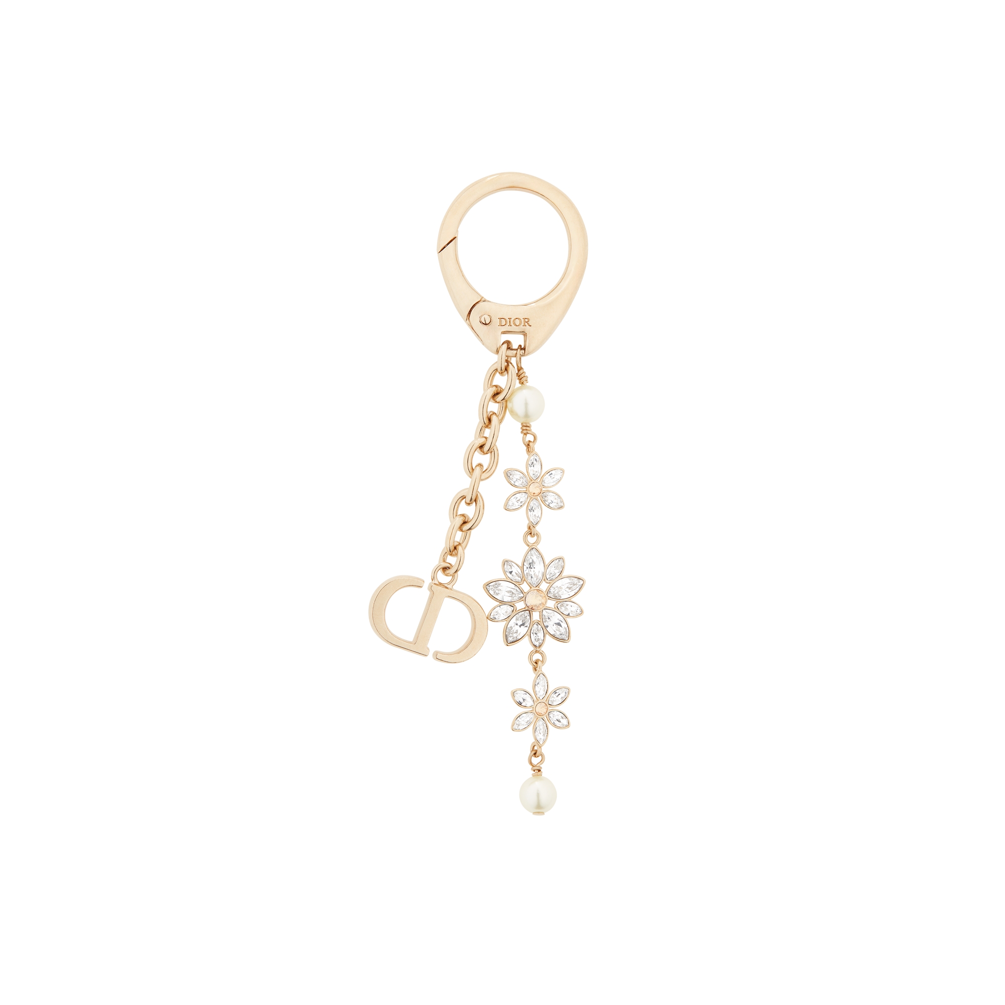 Pale Gold-Finish Metal, White Resin Pearl and Silver-Tone Crystals